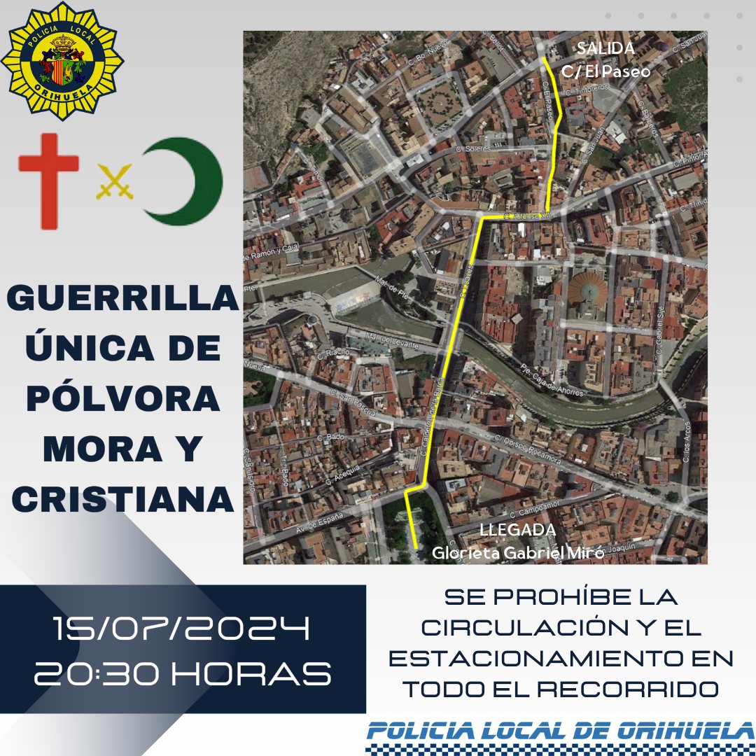 En su segundo día de fiestas, hoy, lunes 15 de julio hay preparados dos actos: el primero a las 20:30 horas la Guerrilla única de la Pólvora desde El Paseo. Continuando a las 22:00 horas con la Toma del Castillo en la Glorieta Gabriel Miró.