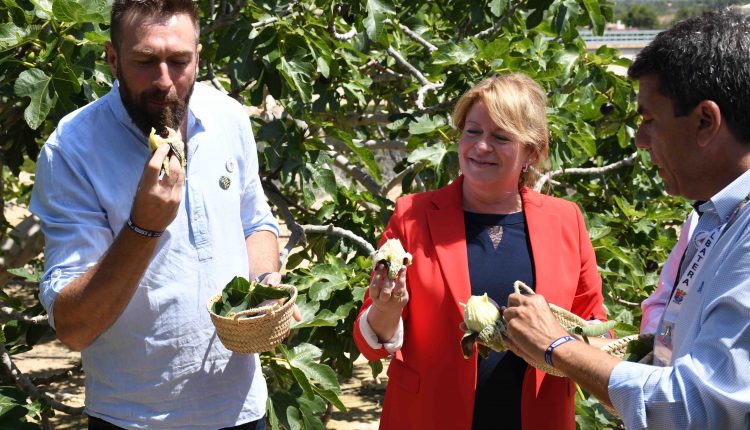 Albatera inaugura la temporada de su producto estrella con el corte de la Breva 2023 en el que han estado presentes Ana Serna, alcaldesa de la localidad, Car-los Mazón, presidente de la Diputación Provincial, Sebastián Cañadas, diputado de Desarrollo Económico, Amparo Pérez, concejala de Agricultura, Mario Ber-ná, vicepresidente de la Asociación de Productores de la Breva de Albatera y Julius Biernet “Julius”, padrino del acto.