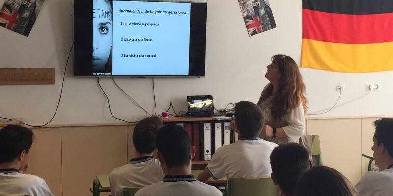 Los alumnos de 4º de ESO del colegio Oratorio Festivo participaron este martes en un taller sobre «Prevención en la violencia de género», el cual fue impartido por Dª Paqui Tormo y promovidas por la Concejalía de Bienestar Social del Ayuntamiento de Orihuela. Esta es una formación transversal complementaria a la formación en Valores-Virtudes que se imparte en el Colegio.