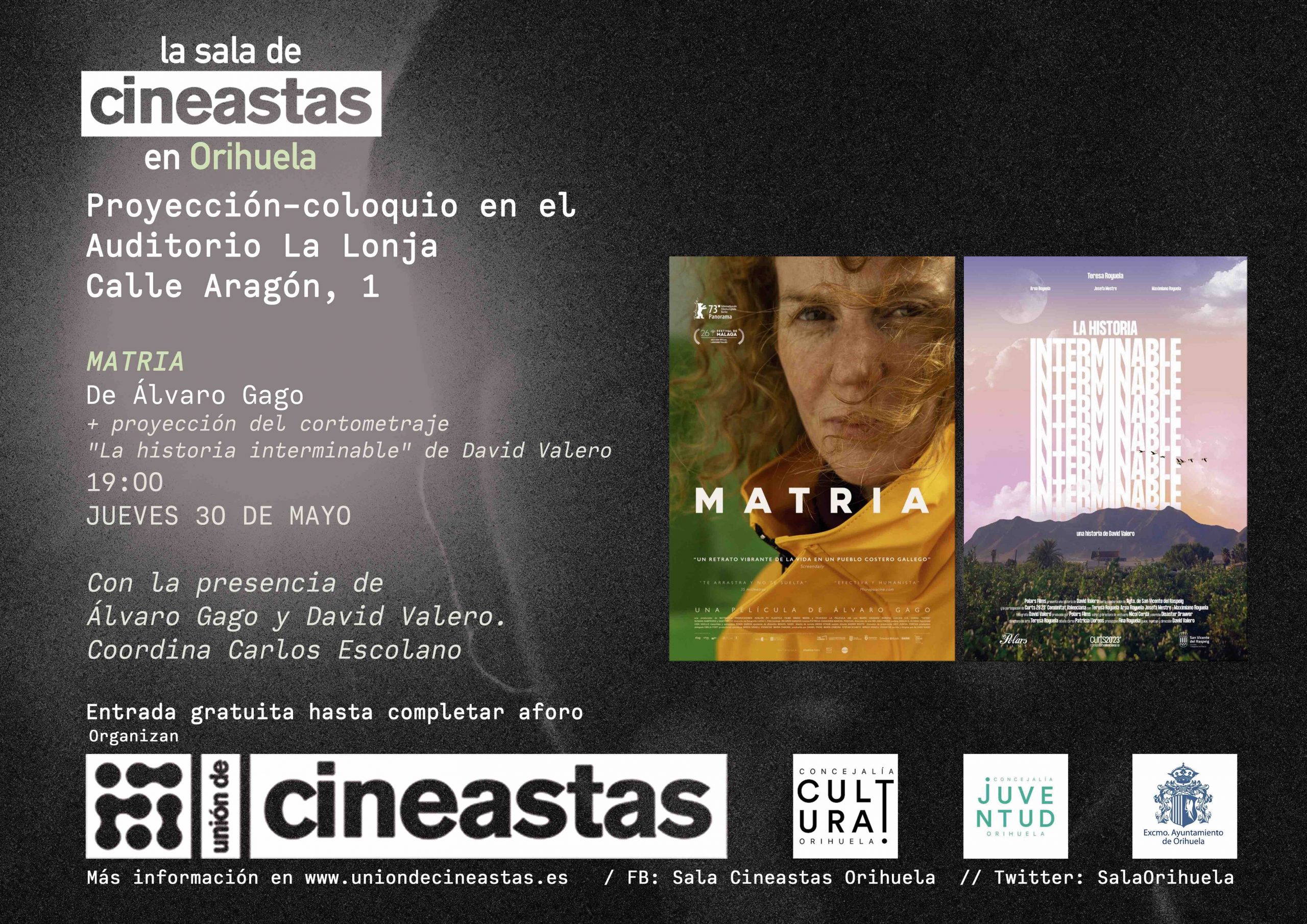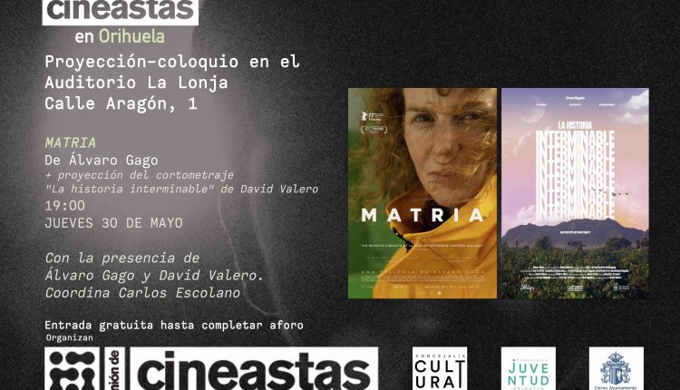 La sesión del mes de mayo de la Sala de Cineastas tendrá lugar el jueves 30 de mayo a las 19 horas en el Auditorio de La Lonja de Orihuela. Con entrada libre hasta completar aforo.