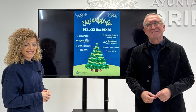 La concejala de Festividades, Rocío Ortuño, ha presentado hoy el inicio oficial de la Navidad en Orihuela con los actos de encendido de luces que se celebrarán el jueves 4 y viernes 5 de diciembre en diferentes puntos del municipio. En la rueda de prensa también ha estado presente el concejal de Educación, Vicente Pina, para explicar los detalles del concurso ‘Cuento de Navidad’ que se leerá este día por parte del niño ganador. Ortuño ha destacado que “la Navidad arranca en Orihuela cargada de actividades que iremos anunciando en los próximos días, pero todo comienza con el encendido de luces, un momento muy esperado por las familias”.