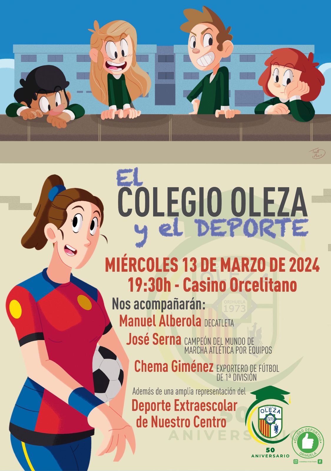 Con motivo del cincuenta aniversario del Colegio Oleza, y enmarcado dentro de la programación de actos a celebrar durante el presente año, el próximo día 13 de marzo tendrá lugar el primero de los encuentros programados para esta ocasión, titulado “El Colegio Oleza y el deporte”.