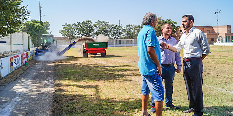 Y es que esta actuación consiste en “la sustitución del césped en su totalidad con semilla de bermuda y con arena de sílice, en lugar de grava como tenía hasta ahora”, indicó Aparicio quien añadió también que “hemos hecho un esfuerzo y comenzamos la resiembra en la fecha idónea para que su estado sea el óptimo al inicio de la temporada”, haciendo referencia al Club Atlético San Bartolomé que entrena y compite en este campo, y cuyo presidente Antonio Perales, agradeció al Ayuntamiento esta iniciativa ya que “es una demanda que llevamos haciendo desde hace muchos años y por fin se va a hacer realidad”.