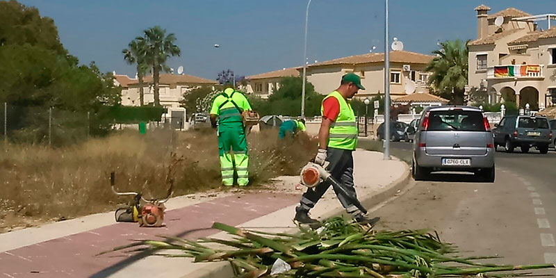Asimismo, la empresa ha contado con cinco peones de jardinería, formando así dos equipos de actuación para ejecutar los trabajos en Punta Prima, Villamartín, Campoamor, Villapiedra, La Florida, La Zenia, Cabo Roig y Playa Flamenca, mientras que también se ha actuado en las avenidas y calles más transitadas como la Calle Paraná, Calle Talco, o la Carretera de San Miguel de Salinas, de manera que en los próximos días continuarán por otras urbanizaciones.