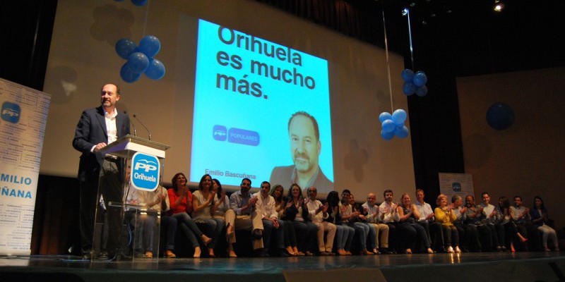 El Partido Popular de Orihuela celebró este lunes el acto de presentación de la candidatura y del Programa Electoral, en el Aula de Cultura de la CAM, que se quedó pequeña ante la asistencia de las más de seiscientas personas, que demostraron de nuevo su apoyo al proyecto político del cabeza de lista Emilio Bascuñana.