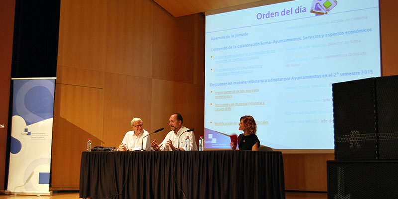 El alcalde, Emilio Bascuñana, presidió este viernes las jornadas de Suma Gestión Tributaria, que tuvieron lugar en el Auditorio de la Lonja, dirigidas especialmente a las nuevas corporaciones de los Ayuntamientos de la comarca de la Vega Baja, donde se presentaron las novedades tributarias previstas para el segundo semestre de 2015.