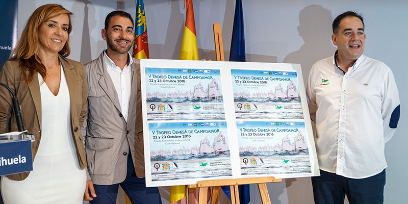 El concejal de Deportes, Dámaso Aparicio, y la edil de Turismo, Sofía Álvarez, presentaron este martes la quinta edición del Trofeo Dehesa de Campoamor de la Regata Autonómica de Vela Infantil (Clase Optimist), que se celebrará el próximo fin de semana, 22 y 23 de octubre, en el Club Náutico de Campoamor, en Orihuela Costa.