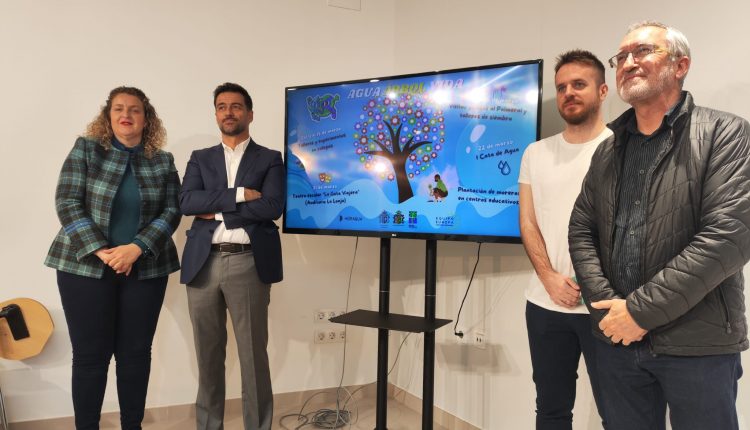 La concejala de Medio Ambiente, Noelia Grao, y el edil de Educación Vicente Pina, han presentado esta mañana las actividades programadas con motivo de la celebración del Día Mundial del Agua (22 de marzo) y del Árbol (21 de marzo), junto al gerente de Hidraqua, Paco Muñoz, así como por el viceportavoz de la asociación Equipo Europa, Enrique Montero.