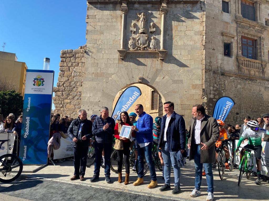 La alcaldesa, Carolina Gracia, ha cortado hoy la cinta de la salida de la 74ª edición de la VCV – Volta a la Comunitat Valenciana Gran Premi Banc Sabadell junto con el concejal de Deportes, Luis Quesada; el director del evento deportivo, Ángel Casero; y el director general de Turismo, Herick Campos. Así, Carolina Gracia ha destacado la “apuesta que se ha hecho desde las áreas de Turismo y Deportes en convertirnos en referente porque Orihuela puede ser un municipio que ofrezca este tipo de eventos”. En este sentido, ha recordado que la salida de la prueba desde Orihuela fue objeto de promoción turística en la última edición de la Feria Internacional de Turismo (Fitur) y ha considerado que esta actividad también sirve para subrayar la importancia de la deportividad y de un estilo de vida saludable entre los vecinos del municipio, especialmente a los más pequeños. Además, ha mandado un mensaje de comprensión a los vecinos que hayan podido verse afectados por la organización de la salida de la Vuelta. “Lo importante es que Orihuela llegue a todos los rincones del mundo”, ha apuntado. En este sentido se ha manifestado el concejal de Deportes, Luis Quesada, quien ha recordado que la competición puede seguirse en “streaming” y a través del canal deportivo Eurosport. “Mostraremos nuestra riqueza cultural y monumental”, ha dicho el edil, quien ha avanzado que, desde su área, se seguirá apostando por este tipo de eventos porque “estamos suficientemente preparados para organizar estos actos”. Además, ha agradecido la labor del equipo técnico del área de Deportes y a la propia organización de la Volta, puesto que “la organización ha sido perfecta”.