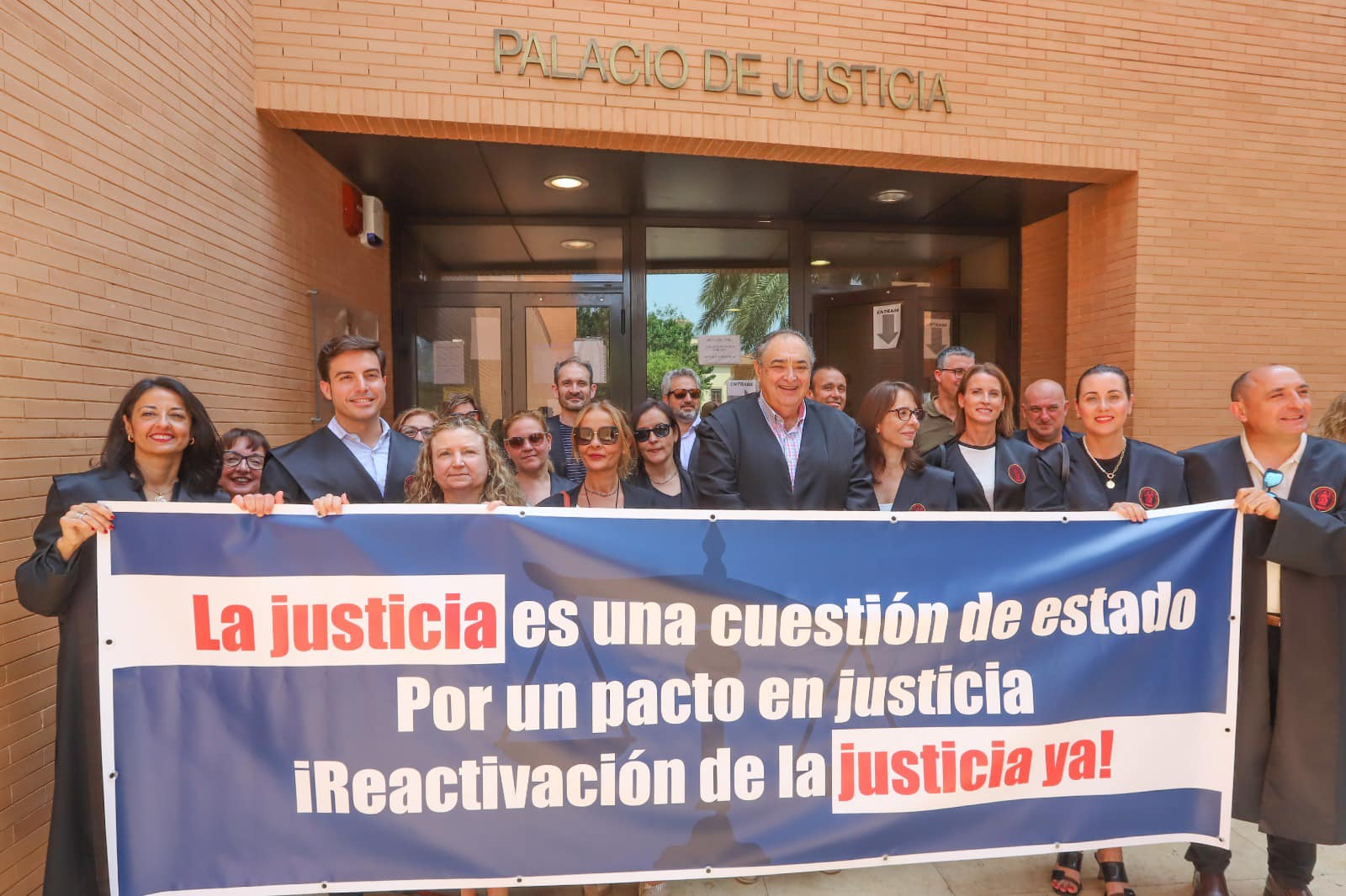 La Junta de Gobierno del Colegio de Abogados de Orihuela ha reclamando en esta concentraciones un acuerdo que reactive, de forma inmediata, el servicio público de justicia, con la adopción medidas urgentes que resuelvan los retrasos acumulados y la dignidad y respeto a la profesión.