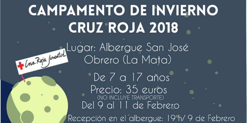 Cruz Roja Juventud en Orihuela ha organizado un campamento de invierno en Albergue San José, entre Guardamar y La Mata los días 9, 10 y 11 de febrero de 2018 para menores de 7 a 17 años.