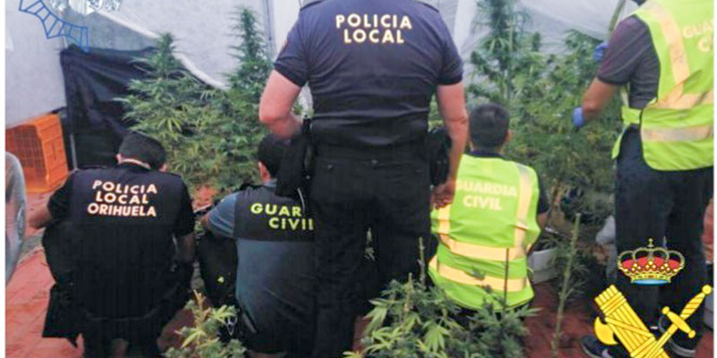 La Policía Local de Orihuela, en colaboración con la Guardia Civil, ha detenido a una persona implicada en el cultivo de plantas de marihuana en la pedanía de San Bartolomé.