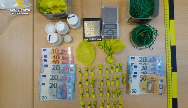 Durante el registro, se detuvo al hombre investigado y se intervinieron 24 gramos de cocaína, 220 euros en billetes de diversos valores, sustancias para adulterar la droga, así como instrumentos para el pesaje y manipulación.