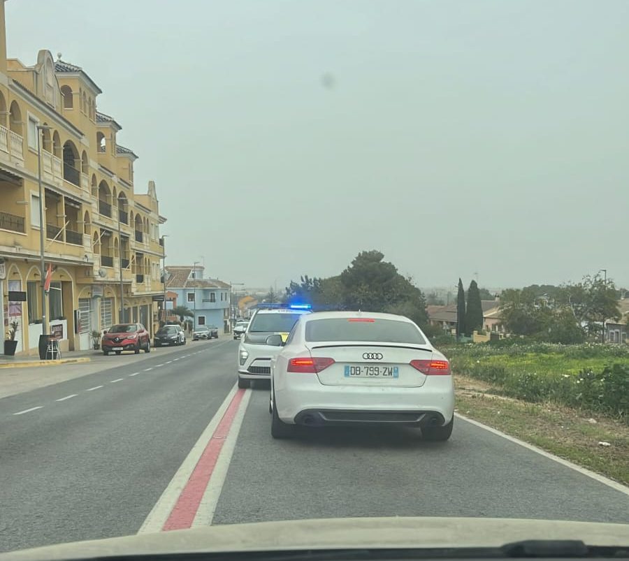 El turismo fue finalmente interceptado en el municipio de Algorfa, con la colaboración de la Policía Local de Algorfa y otros cuerpos de seguridad de la comarca.