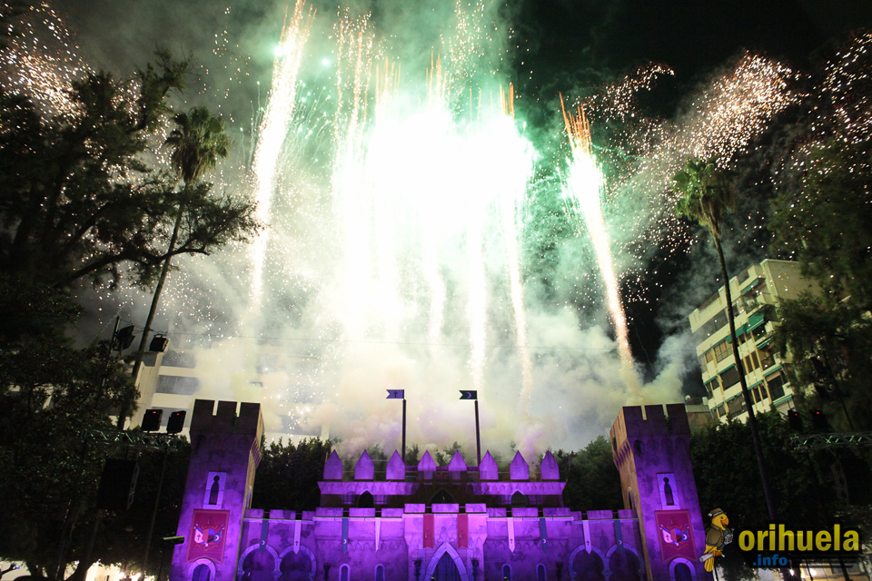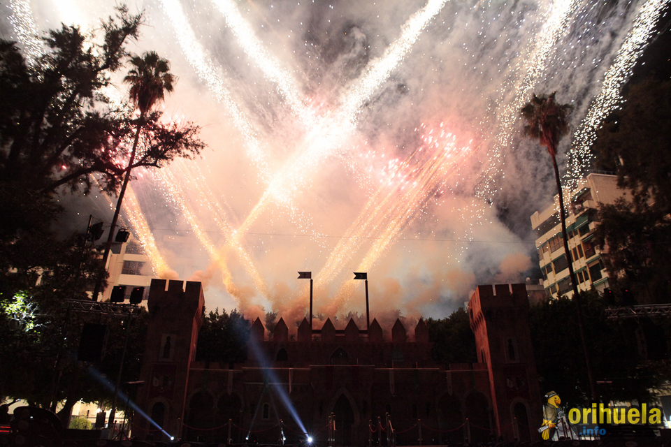 Tras la tradicional representación de la obra «La puerta de la traición» de Atanasio Díe, el colofón final fue un gran espectáculo de luz y sonido a la vez que un espectacular castillo de fuegos artificiales salía de las almenas del castillo para hacer retumbar Orihuela.