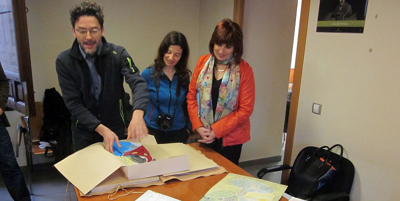 El autor, que ha comparecido con la edil, ha asegurado que se trata de 12 cartones que ha confeccionado dentro de una piel de vaca, a la manera como los grandes navegantes venecianos acumulaban sus cartas de navegación, lo que supone a su vez “un viaje de navegación por la obra de Miguel Hernández”.