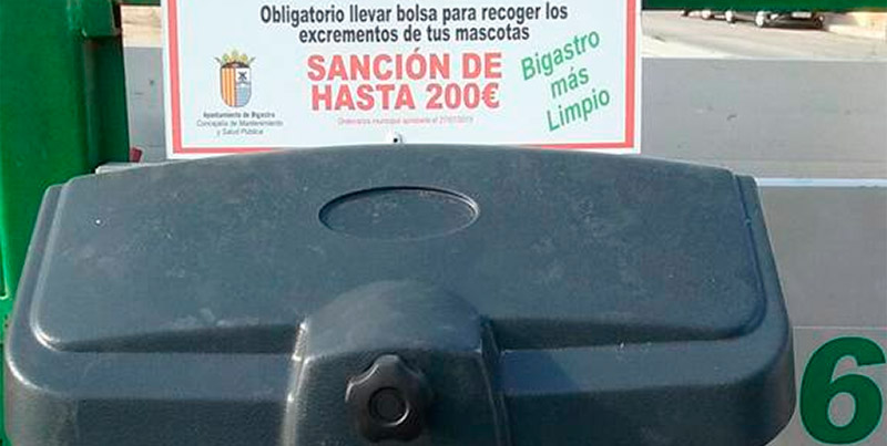 Para concienciar a los propietarios de mascotas de su obligación de recoger los excrementos que ocasionan en la vía pública, la Concejalía de Mantenimiento y Salud Pública ha instalado papeleras con dispensador de bolsas de recogida de excrementos en los siguientes puntos de Bigastro: