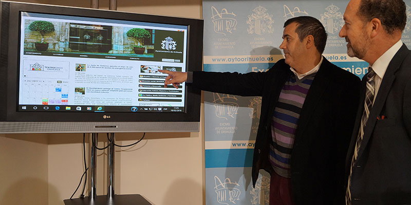 El alcalde, Emilio Bascuñana, y el concejal de Modernización de la Administración, Miguel Ángel Fernández, presentaron este jueves la nueva página web (en sus tres dominios: www.orihuela.es, www.aytoorihuela.com y www.aytoorihuela.es ).