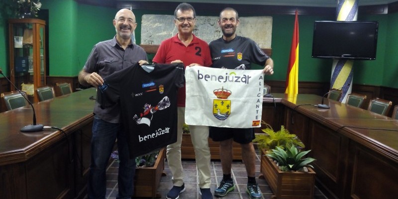 Antonio Bernabé, Alcalde de Benejuzar, y Francisco Lorenzo, Concejal de Deportes han recibido a Chuchi para desearle buena suerte en esta nueva experiencia, la grabación de la primera parte del video, que tendrá lugar este fin de semana en los Pirineos, y su posterior carrera.