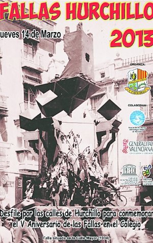 El 14 de marzo el Colegio de Hurchillo celebrará las Fallas 2013, tal y como indica el cartel que han presentado del evento. El centro escolar lleva celebrando la tradición fallera hace cinco años, reviviendo una festividad que hace años se celebraba en Orihuela donde se implantaban más de 20 fallas en sus calles.
