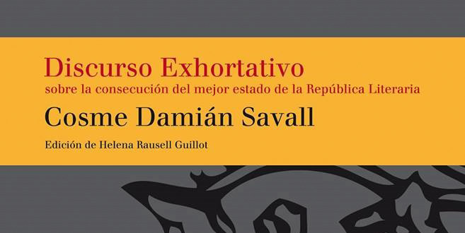 El miércoles, 29 de enero a las 20:00 horas se presentará en la Sala Rafael Altamira de la Universidad de Alicante el libro Discurso exhortativo sobre la consecución del mejor estado de la República literaria, de Cosme Damián Savall, editado por la Concejalía de Cultura dentro de su colección ‘Memoria Literaria de Orihuela’.