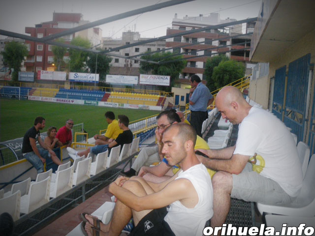 Para matar el tiempo, pero sobre todo el cansancio, se ha estado charlando, jugando a las cartas, atendiendo a la prensa y todo lo que el sofocón dejaba hacer, ya que el calor hoy está siendo insoportable en el Campo Municipal Los Arcos.