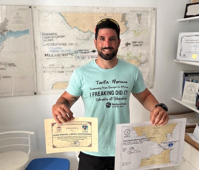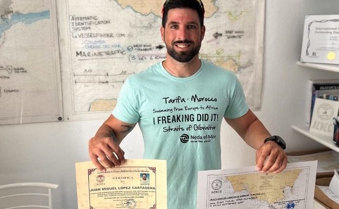 El oriolano Juan Miguel López suma otra hazaña deportiva, cruza nadando el Estrecho de Gibraltar