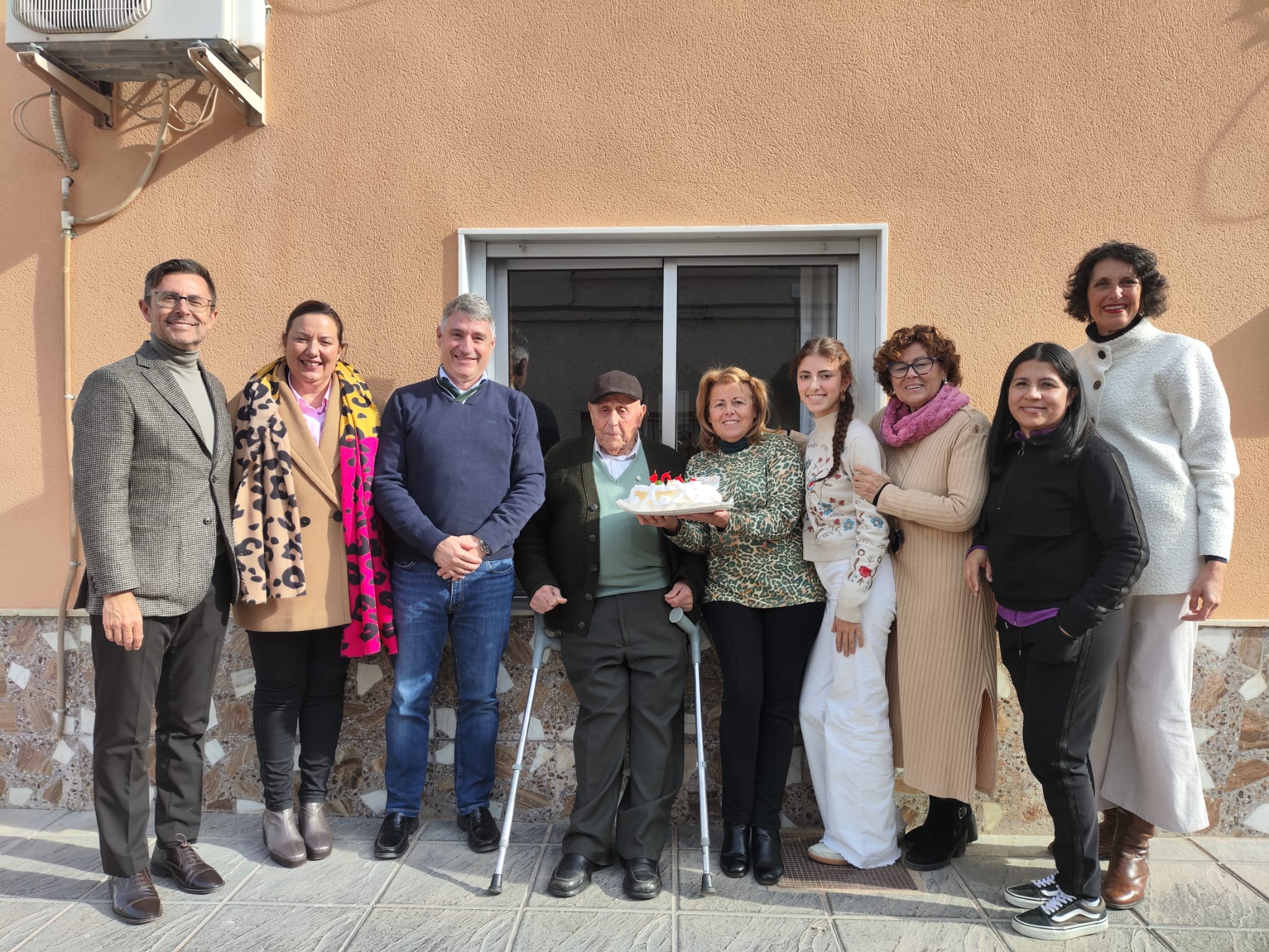 El alcalde de Orihuela, Pepe Vegara, acompañado por la edil de Sanidad, Irene Celdrán, ha visitado esta mañana en su casa al oriolano Ramón García Escudero, que ha cumplido hoy martes 100 años.