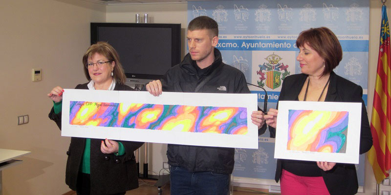 La Concejala de Educación, Rosa Martínez, y la directora del Colegio Público Miguel Hernández, Manoli Bernabé, han presentado hoy el diseño ganador, de entre los seis que se presetaron del concurso de ideas que se falló el pasado 30 de enero convocado por la Concejalía para acometer una representación artística en la fachada del centro escolar que recae a la Calle Oriolanos Ausentes. El boceto elegido ha sido el que presentó el artista de Guardamar del Segura Enrique Sáez Rufete, titulado ‘Naturalezas forzadas’.