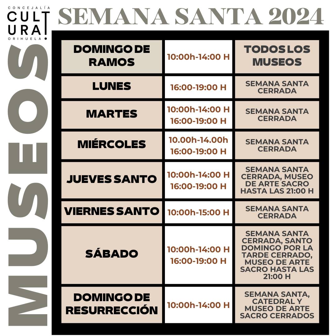 Estos son los horarios y días de apertura de los Museos de Orihuela durante la Semana Santa.