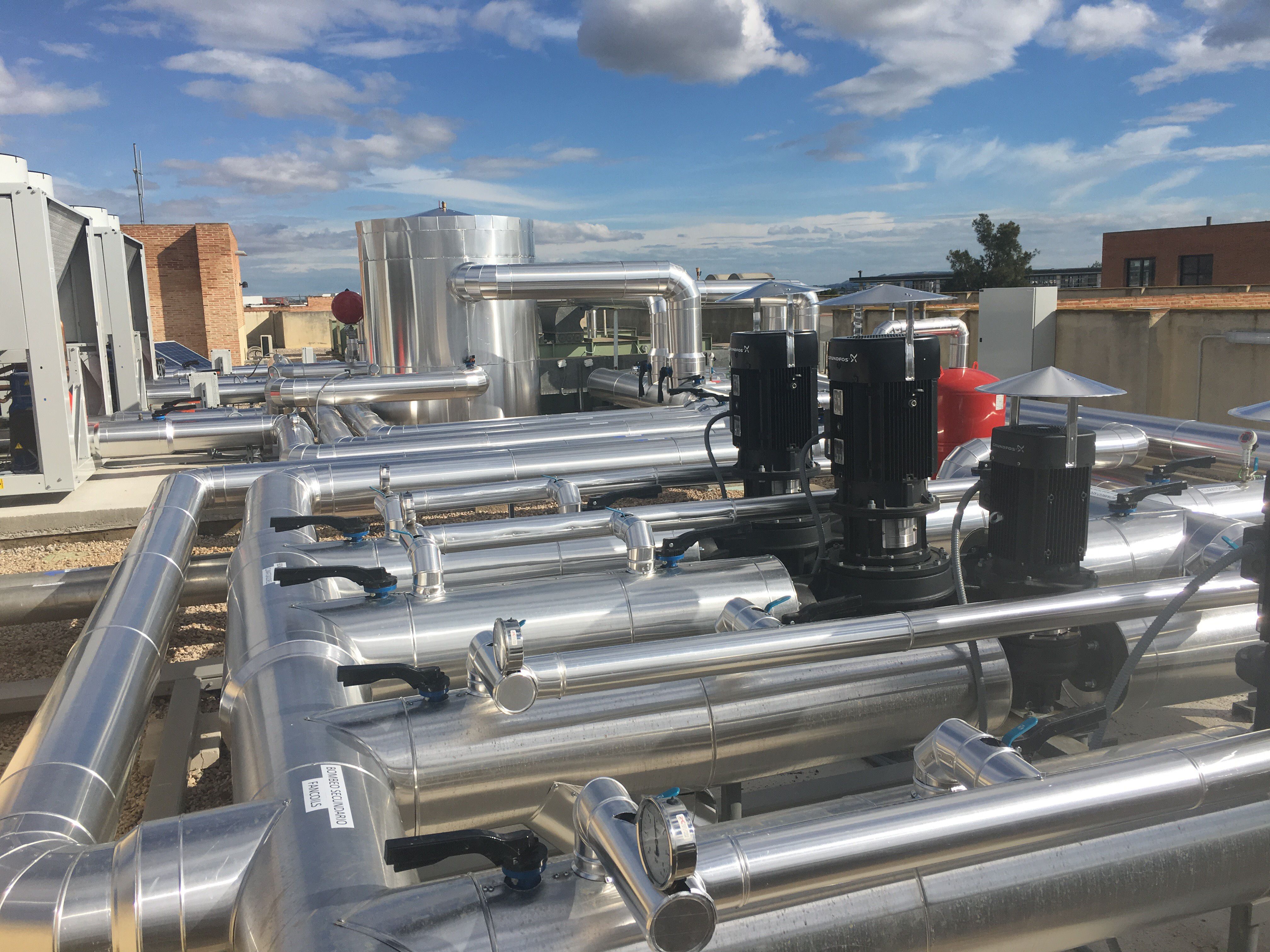En cuanto a la refrigeración, las 2 bombas de calor de alta eficiencia funcionando en modo frío producirán de forma eficiente la refrigeración necesaria en verano. Además, para mejorar la eficiencia energética, el sistema empleará aire exterior como medio de refrigeración en verano y aprovechará las temperaturas más bajas del día que se dan por las noches.