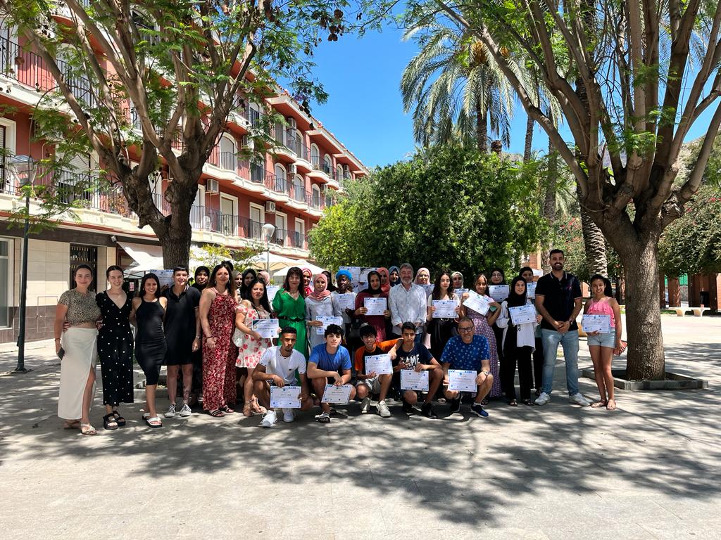 El alcalde de Orihuela, Pepe Vegara, y la concejala de Bienestar Social, Agustina Rodríguez, han hecho hoy entrega de los diplomas correspondientes a los cursos de español: alfabetiza-ción, niveles A1, A2 y B1, del Programa de Inmersión Lingüística e Interculturalidad, perte-neciente al Programa Integral de Regeneración Social de los Barrios del Cinturón Urbano del Monte de San Miguel. El objetivo global es trabajar, mediante programas de acción comunitaria, la verdadera y real inclusión social y laboral de las personas y colectivos que residen en los barrios de San Antón, calle Arriba y adyacentes, Rabaloche, San Isidro y Capuchinos. Con este programa, 119 usuarios han adquirido los conocimientos necesarios que les van a permitir desenvolverse tanto en la vida social como laboral. Agustina Rodríguez ha explicado que “se pretende facilitar la inclusión social y laboral de las personas migrantes residentes en los barrios de San Miguel”. Los beneficiarios del programa se distribuyen en 64 mujeres, 20 hombres, 16 menores y 19 adolescentes. La metodología mediante la que se desarrolla el Programa de Inmersión Lingüística combina actividades orales y de lectoescritura. A través de estas actividades se proporciona al alumnado información de interés en referencia a trámites, costumbres, fiestas, información personal, profesión, área laboral, mostrar interés en una conversación y conectores, entre otros.