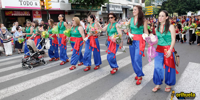 Ayer por la tarde tuvo lugar el Desfile de Abanderadas u Ofrenda Floral en la que los festeros mostraron su lado más solidario donando alimentos en los puestos de Cáritas y Cruz Roja que se habían instalado en la Glorieta Gabriel Miró para tal efecto.