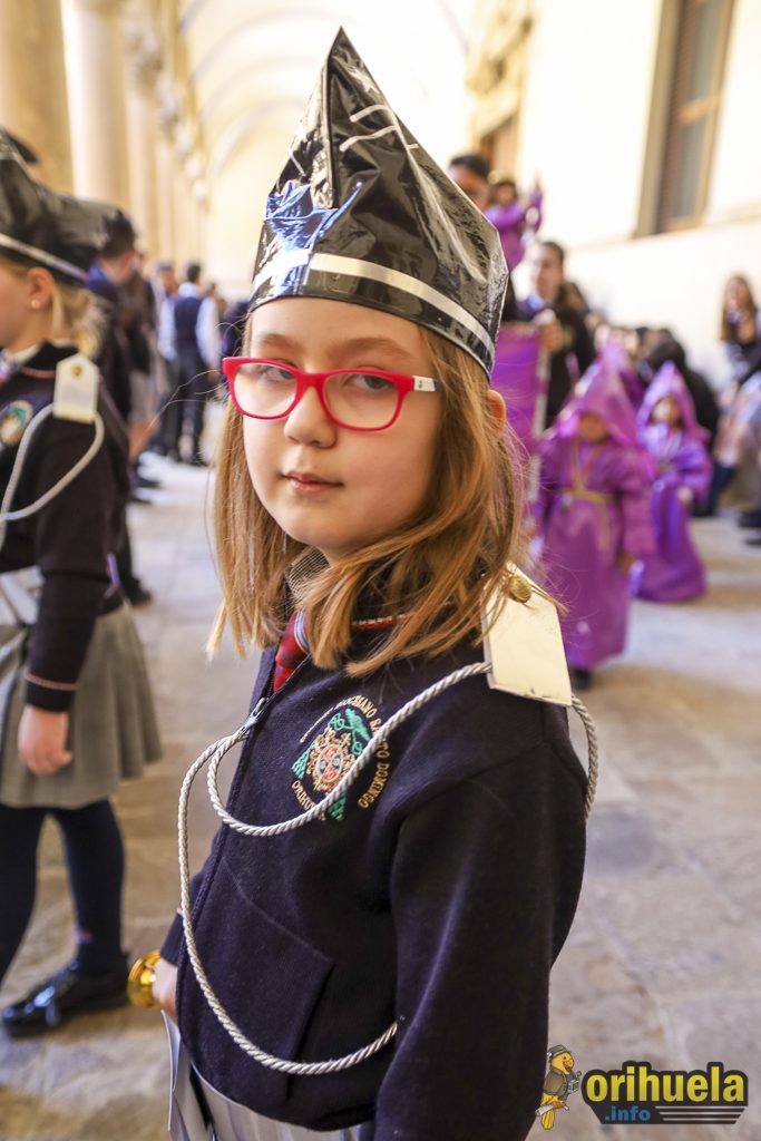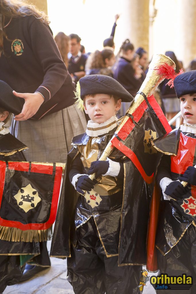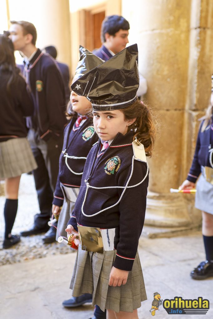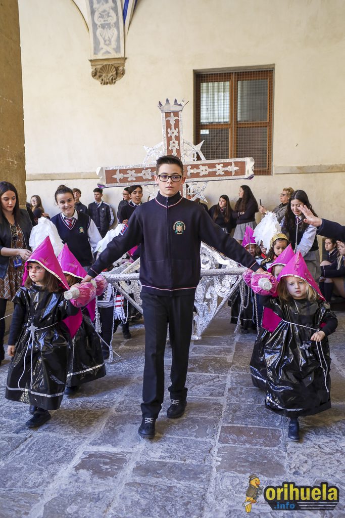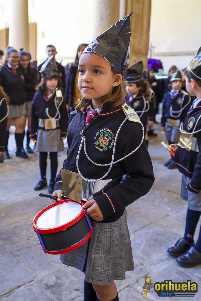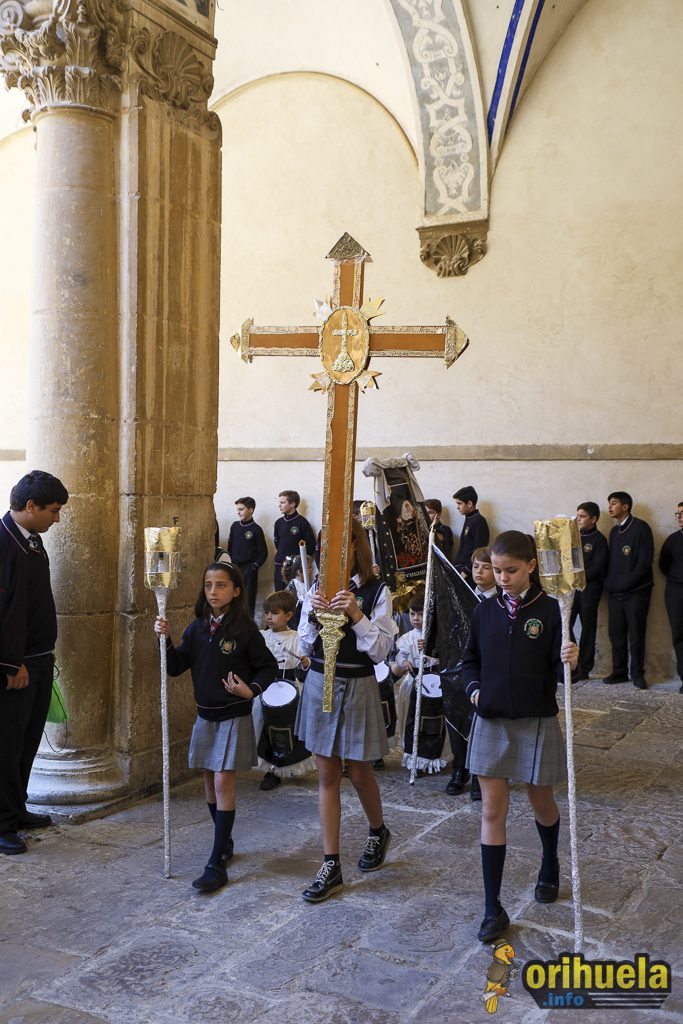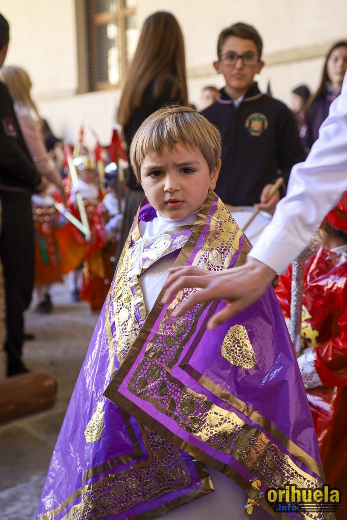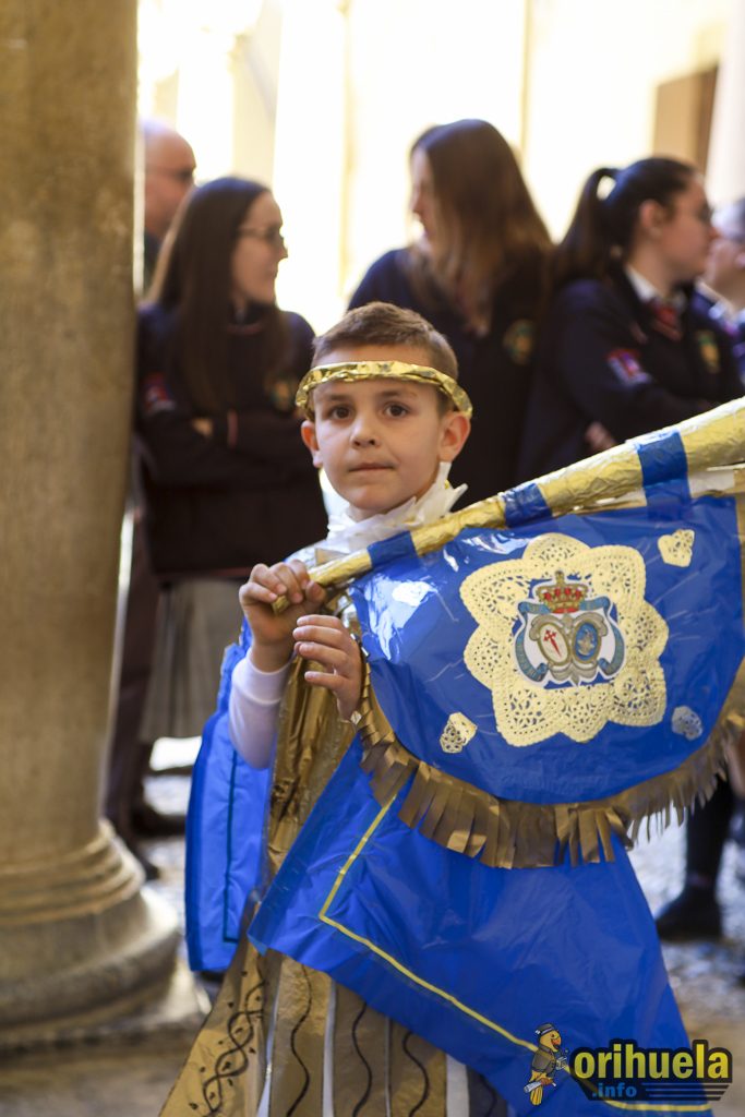 La segunda de las procesiones infantiles de hoy ha sido la del Colegio Santo Domingo, en la que como todos los años han participado cientos de alumnos de todas las edades. Esta procesión transcurre por el claustro y patio de la universidad del colegio y luego sale a la calle por la puerta de la universidad para volver a entrar por la puerta principal.
