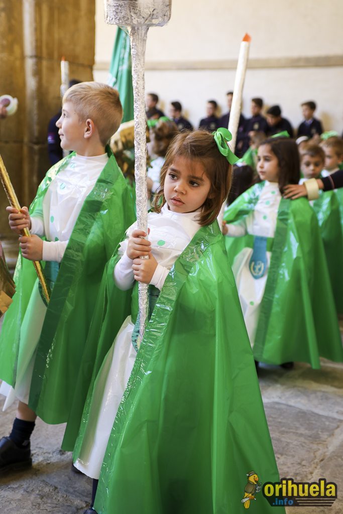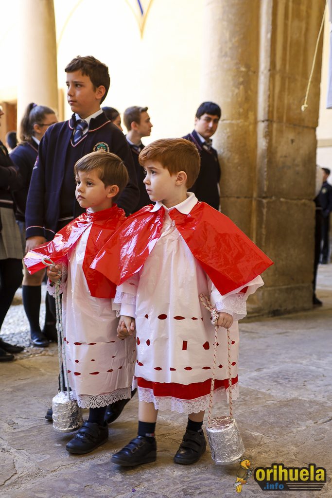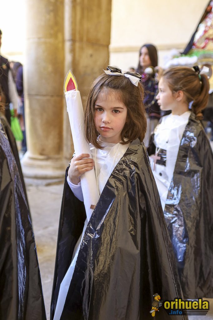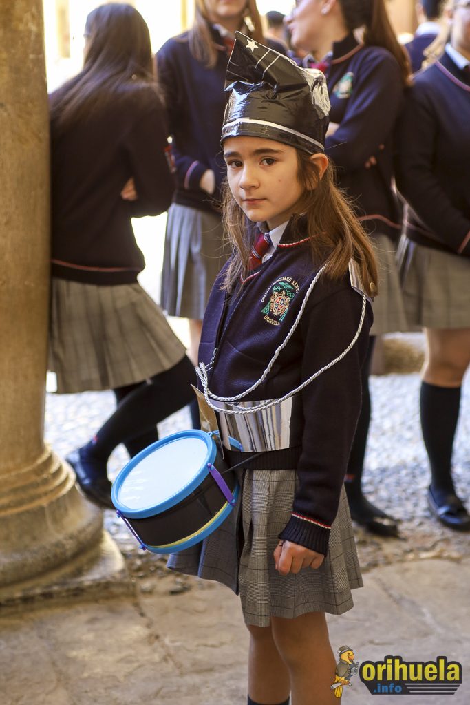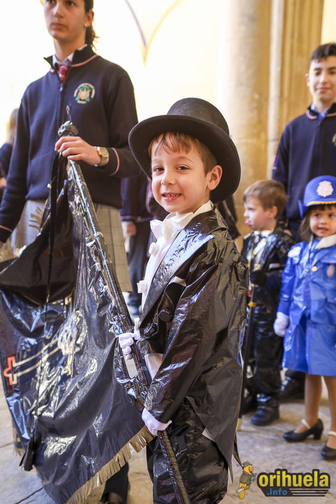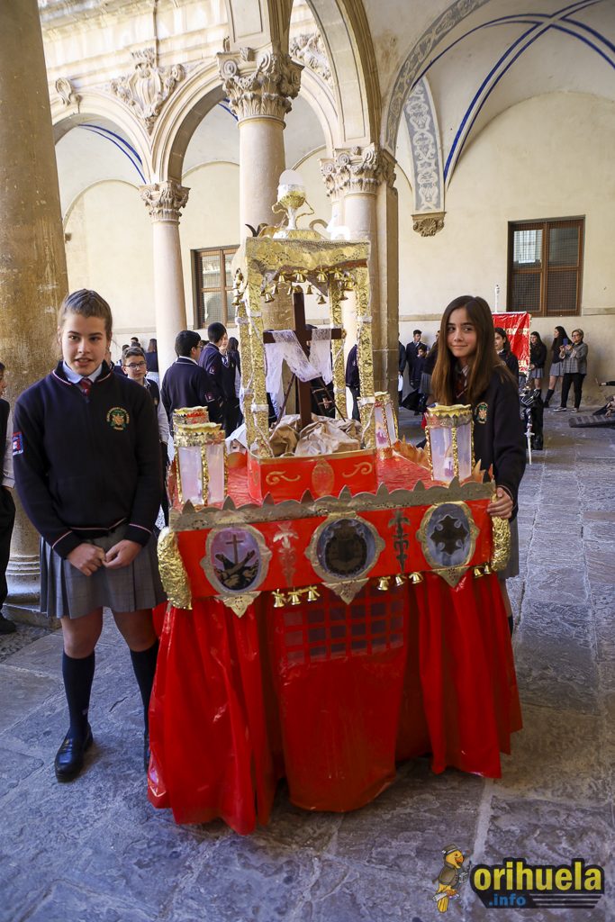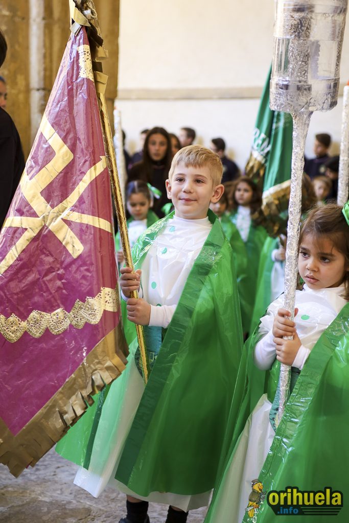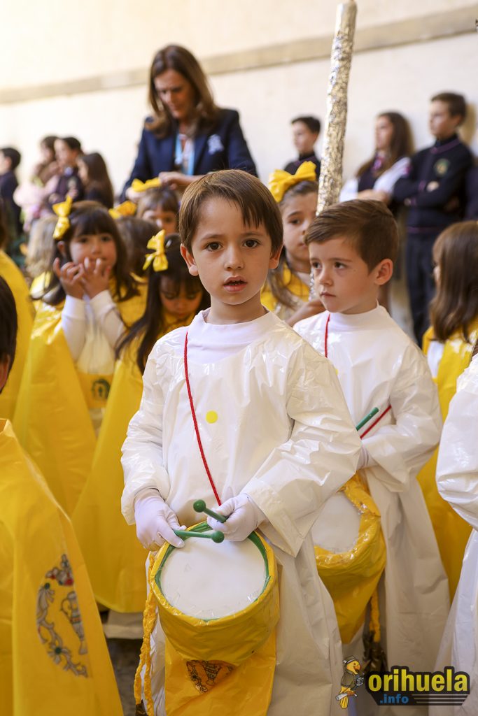 La segunda de las procesiones infantiles de hoy ha sido la del Colegio Santo Domingo, en la que como todos los años han participado cientos de alumnos de todas las edades. Esta procesión transcurre por el claustro y patio de la universidad del colegio y luego sale a la calle por la puerta de la universidad para volver a entrar por la puerta principal.