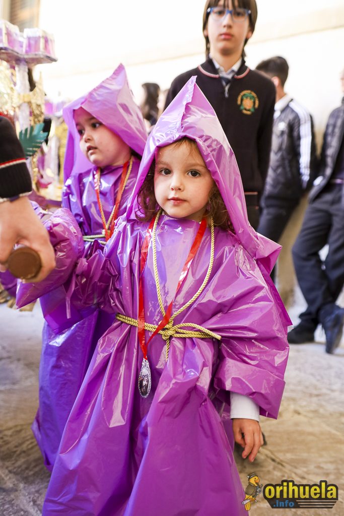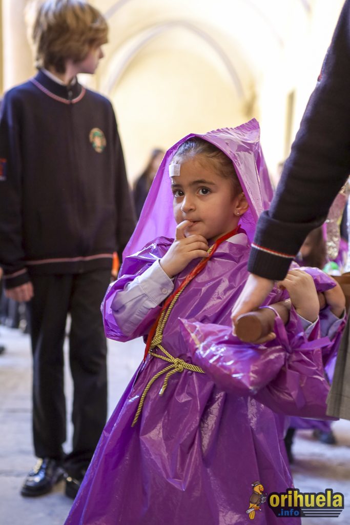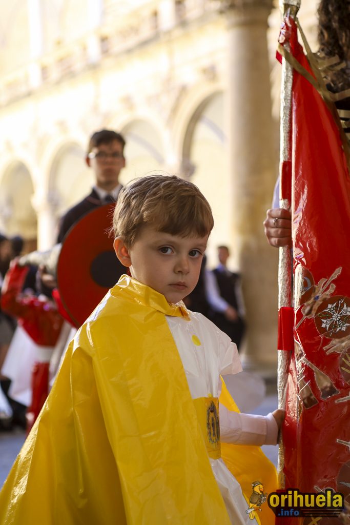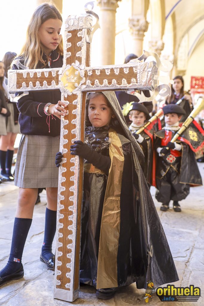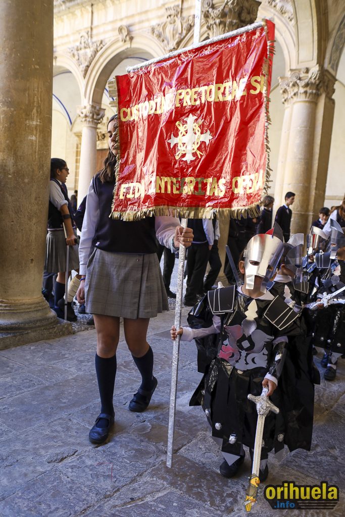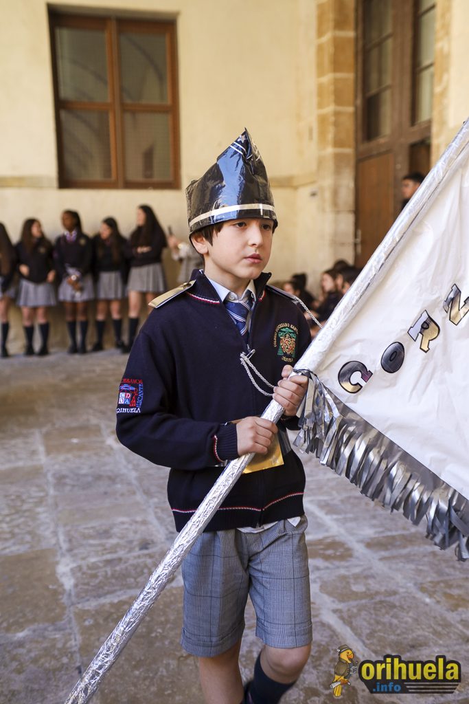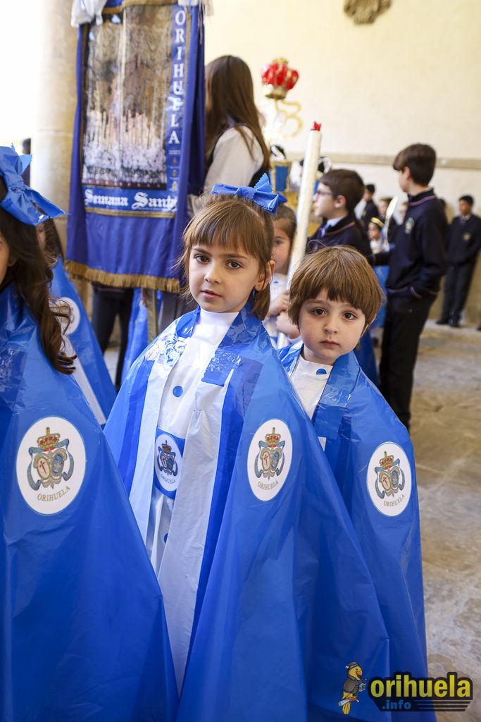 La segunda de las procesiones infantiles de hoy ha sido la del Colegio Santo Domingo, en la que como todos los años han participado cientos de alumnos de todas las edades. Esta procesión transcurre por el claustro y patio de la universidad del colegio y luego sale a la calle por la puerta de la universidad para volver a entrar por la puerta principal.