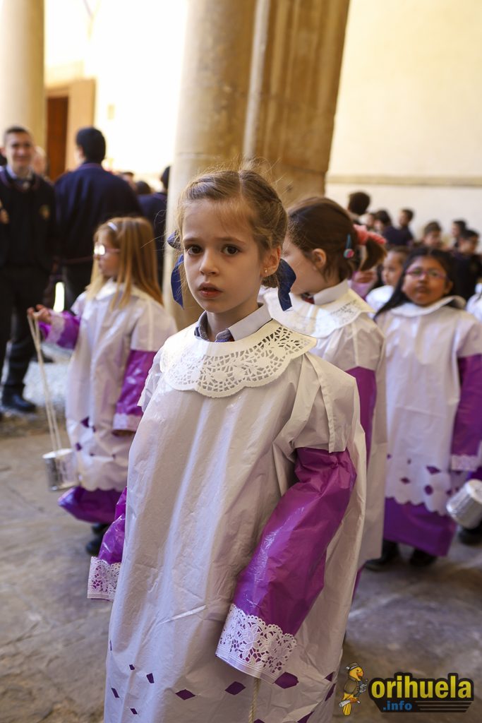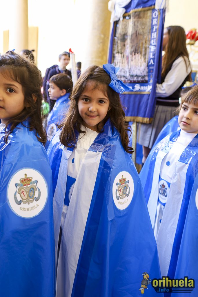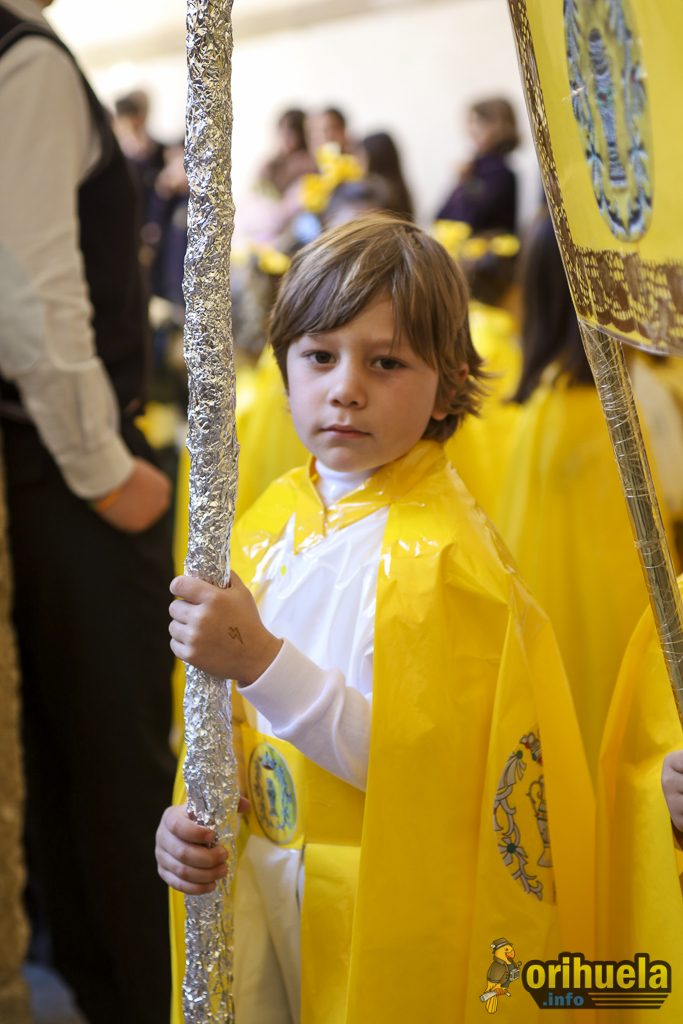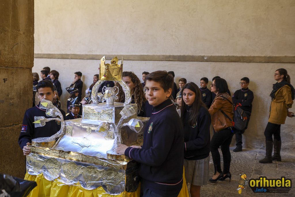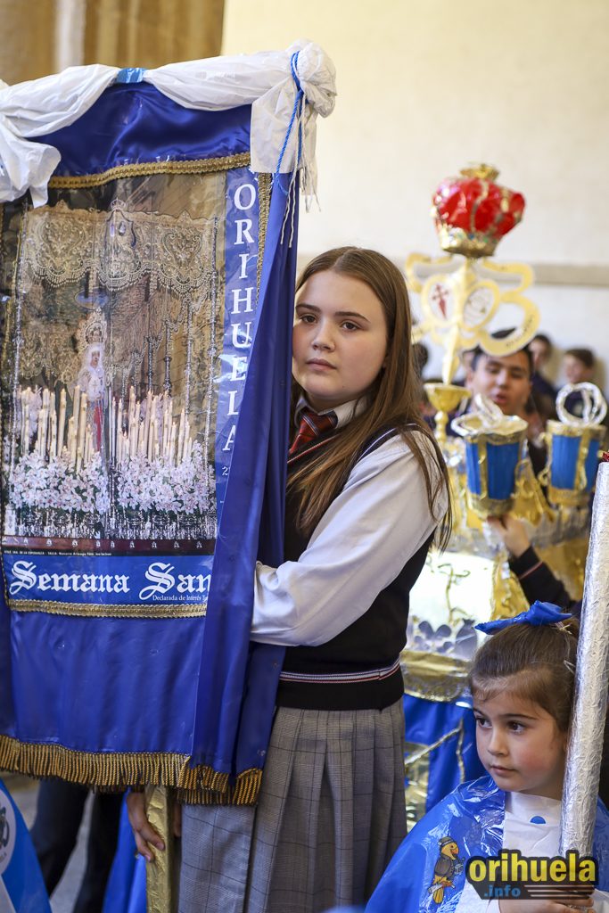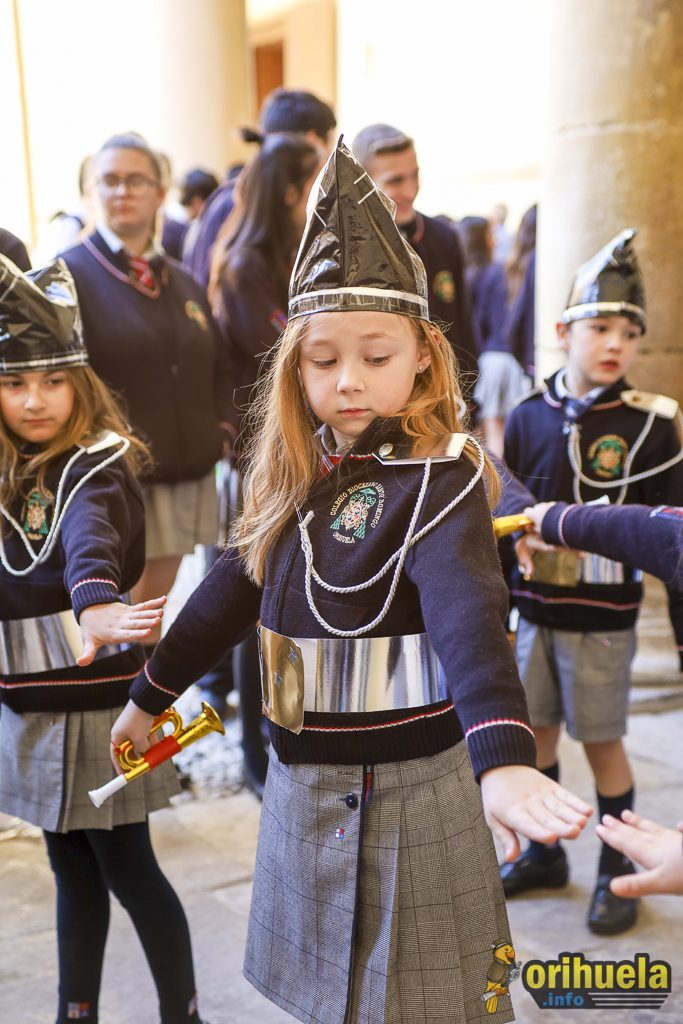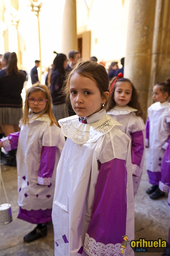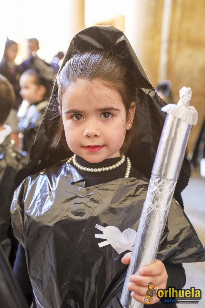 La segunda de las procesiones infantiles de hoy ha sido la del Colegio Santo Domingo, en la que como todos los años han participado cientos de alumnos de todas las edades. Esta procesión transcurre por el claustro y patio de la universidad del colegio y luego sale a la calle por la puerta de la universidad para volver a entrar por la puerta principal.