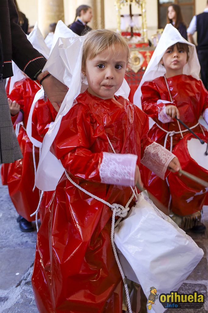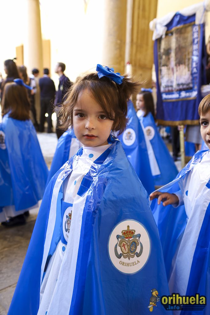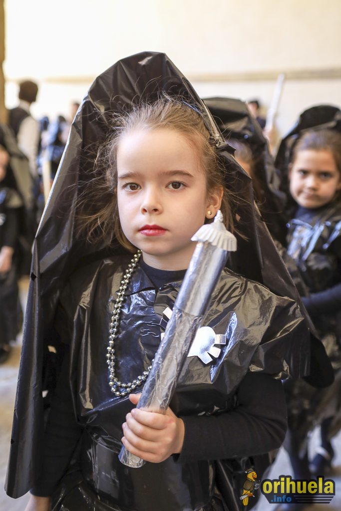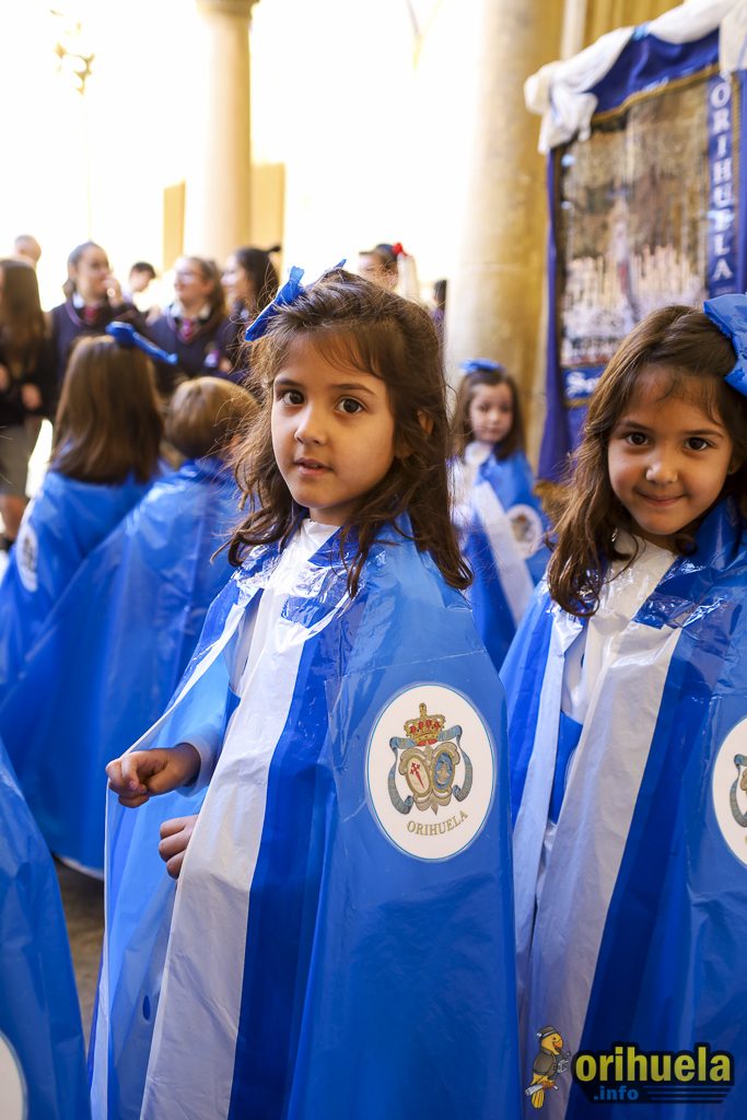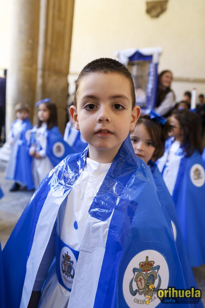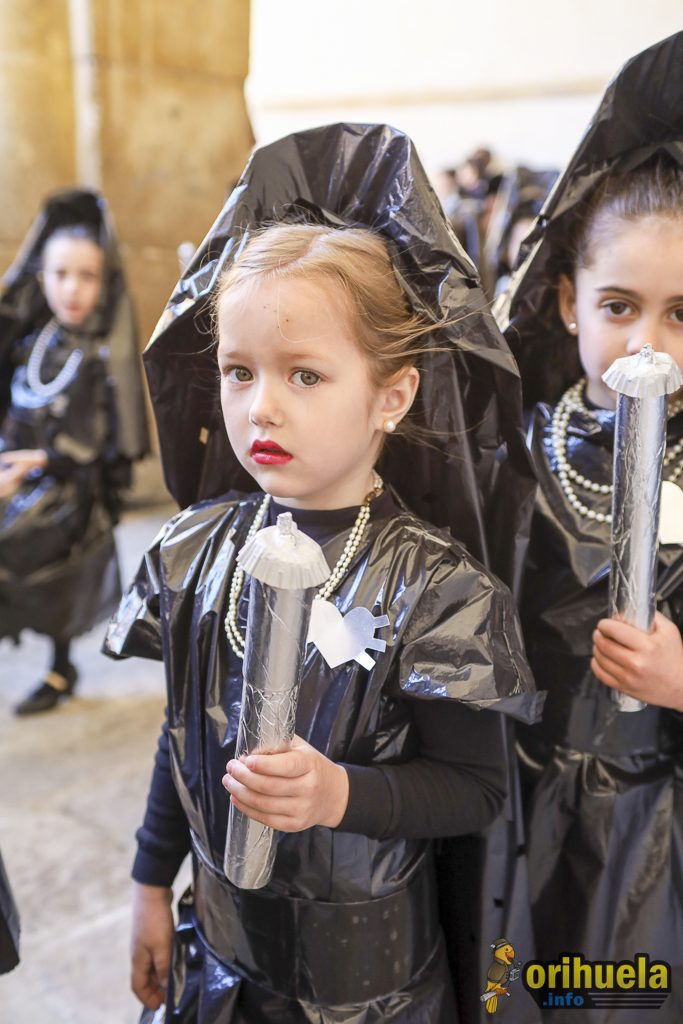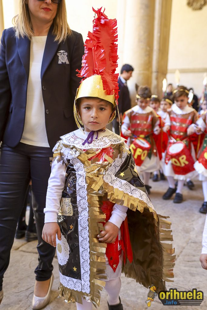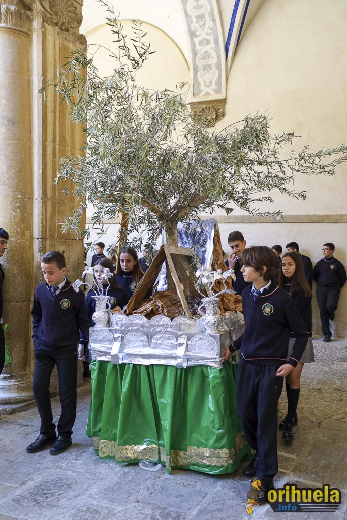 La segunda de las procesiones infantiles de hoy ha sido la del Colegio Santo Domingo, en la que como todos los años han participado cientos de alumnos de todas las edades. Esta procesión transcurre por el claustro y patio de la universidad del colegio y luego sale a la calle por la puerta de la universidad para volver a entrar por la puerta principal.