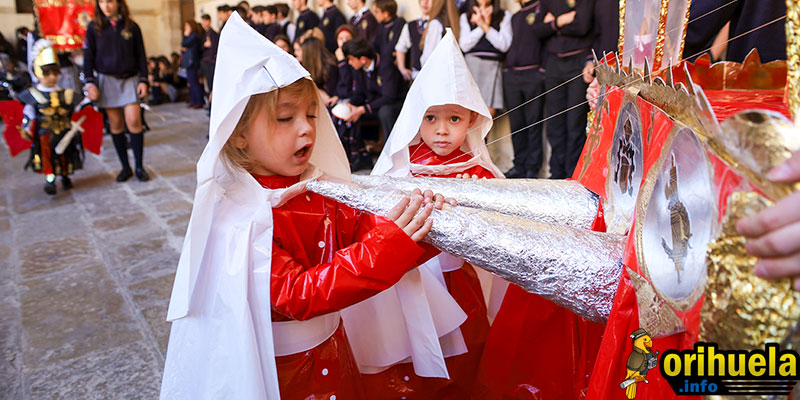 La segunda de las procesiones infantiles de hoy ha sido la del Colegio Santo Domingo, en la que como todos los años han participado cientos de alumnos de todas las edades. Esta procesión transcurre por el claustro y patio de la universidad del colegio y luego sale a la calle por la puerta de la universidad para volver a entrar por la puerta principal.
