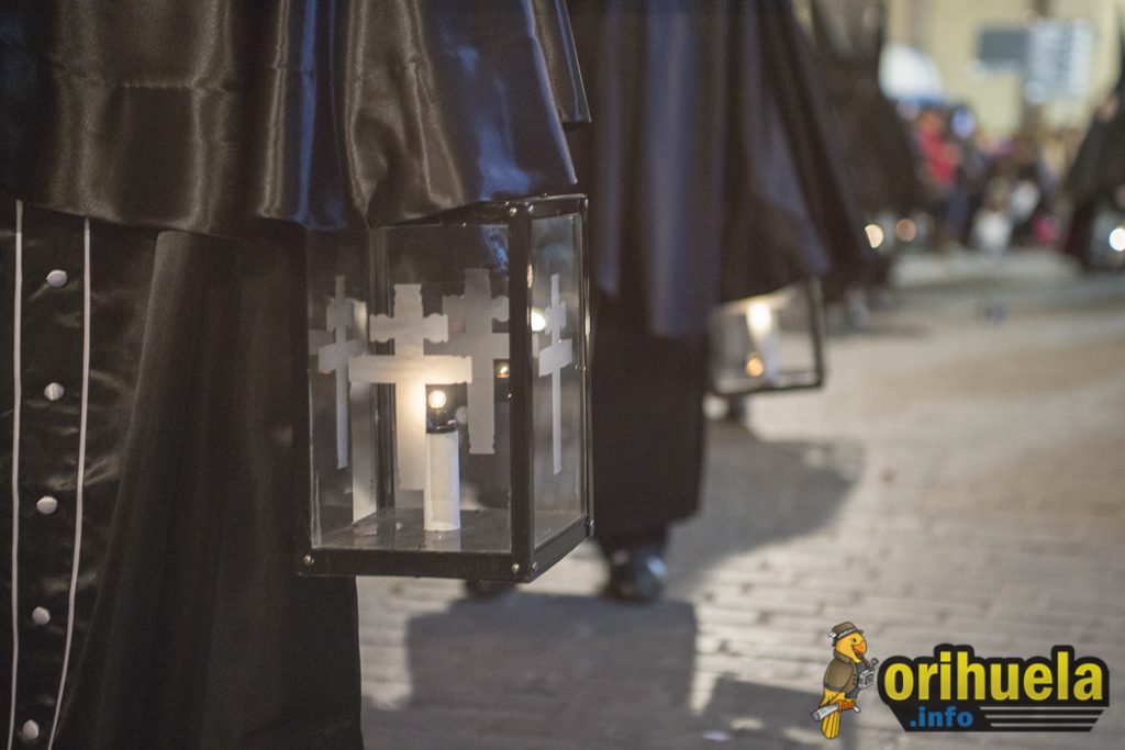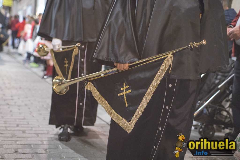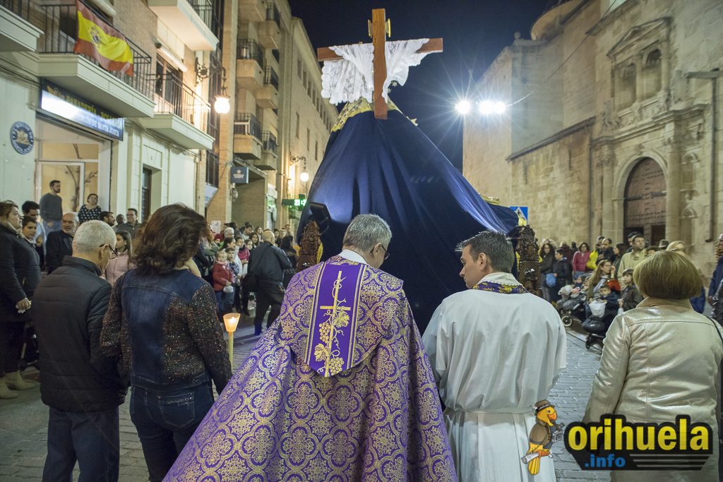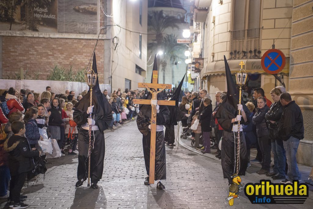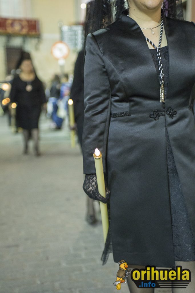 La primera procesión oficial de la Semana Santa oriolana transcurrió el viernes por la noche por las calles de Orihuela partiendo de Santa Justa y con recorrido hasta la iglesia de San Cristóbal. Una procesión breve pero que no por ello dejó de encantar a los asistentes.