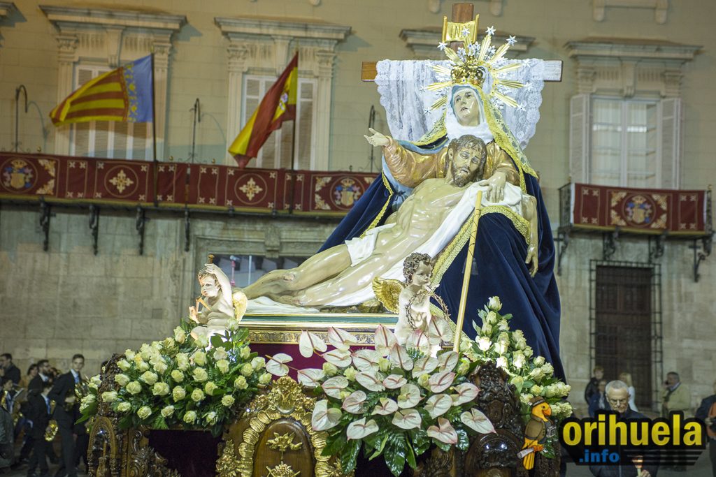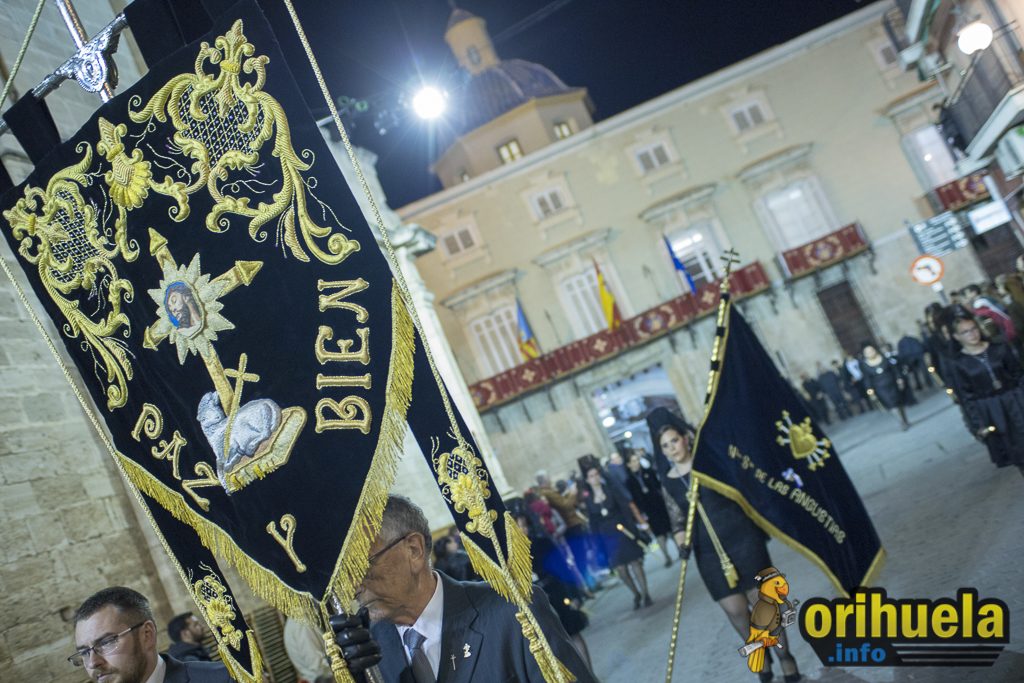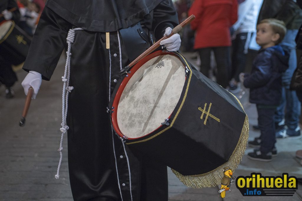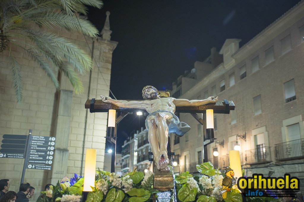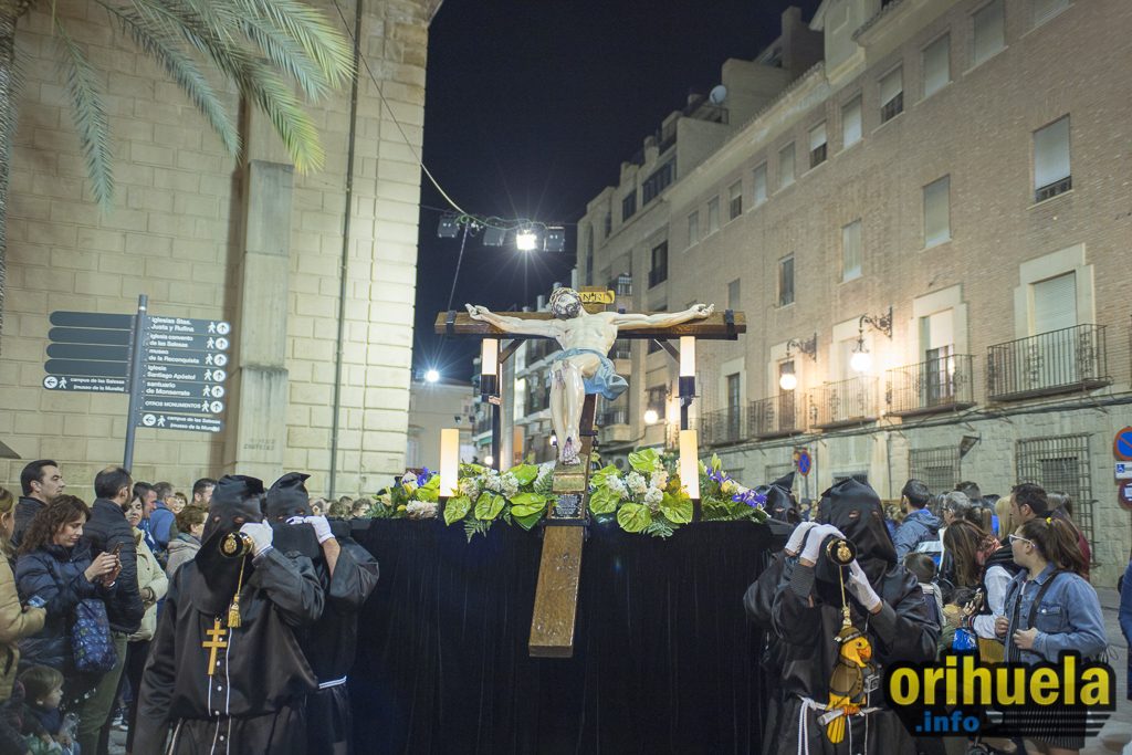La primera procesión oficial de la Semana Santa oriolana transcurrió el viernes por la noche por las calles de Orihuela partiendo de Santa Justa y con recorrido hasta la iglesia de San Cristóbal. Una procesión breve pero que no por ello dejó de encantar a los asistentes.