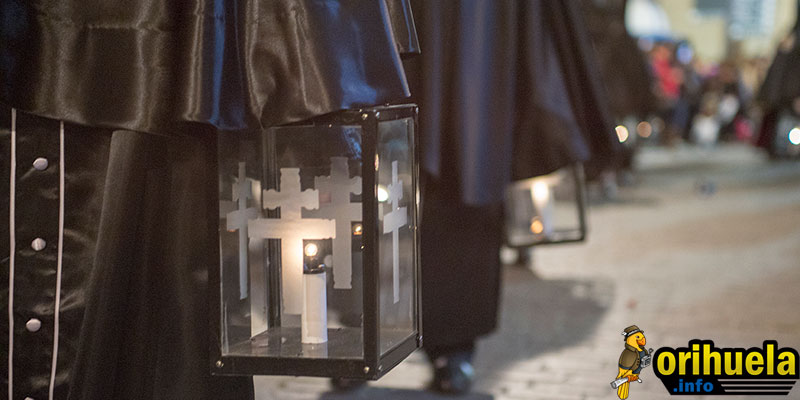 La primera procesión oficial de la Semana Santa oriolana transcurrió el viernes por la noche por las calles de Orihuela partiendo de Santa Justa y con recorrido hasta la iglesia de San Cristóbal. Una procesión breve pero que no por ello dejó de encantar a los asistentes.