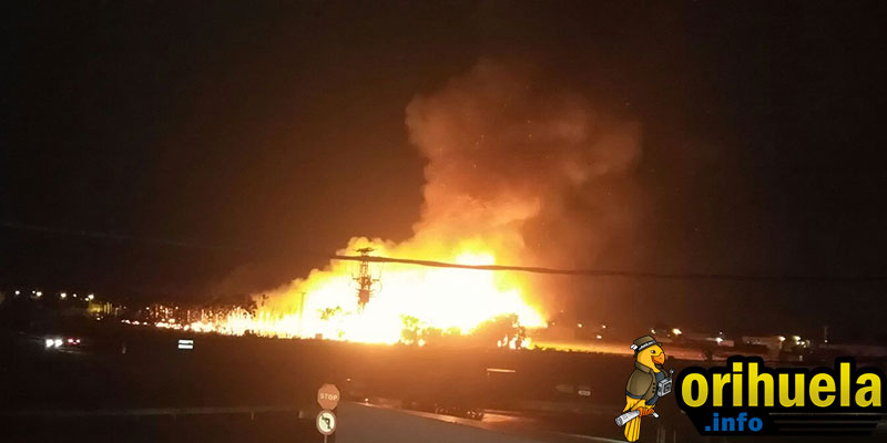 Esta noche se ha producido un incendio que está arrasando con todo un huerto de palmeras en Orihuela mientras los servicios de emergencias intentan controlar el fuego.