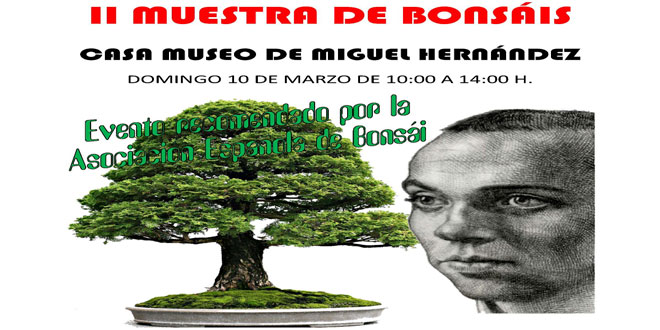 Este fin de semana se celebrará en la Casa Museo de Miguel Hernández la II Muestra de Bonsáis «Memorial Miguel Hernández», organizado por el Club Bonsái Oriol y la Fundación Cultural Miguel Hernández, con la colaboración de la Asociación Española de Bonsái y la Concejalía de Cultura del Ayuntamiento de Orihuela.