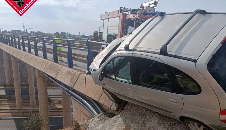 Este lunes, el Consorcio Provincial de Bomberos de Alicante ha intervenido en un incidente en la urbanización de Lomas de Cabo Roig, Orihuela, tras recibir una alerta a las 9:44 horas. El suceso ocurrió en un puente sobre la AP-7, en la carretera de San Miguel, donde un vehículo quedó en una situación de riesgo tras colisionar contra una reja de protección, quedando parcialmente suspendido sobre el quitamiedos.