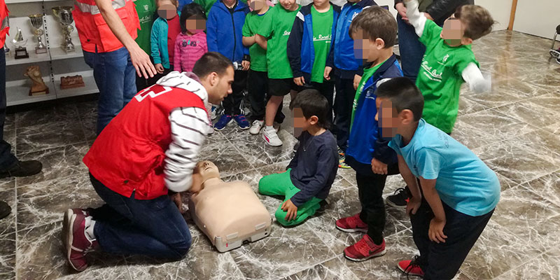 El concejal de Deportes, Dámaso Aparicio, y la edil de Sanidad, Noelia Grao, asistieron este miércoles al taller de Reanimación Cardiopulmonar y Hábitos Saludables, que se llevó a cabo en el Pabellón Municipal «Bernardo Ruiz». En esta actividad, organizada por la Concejalía de Deportes y Cruz Roja Orihuela, participaron los alumnos de la Escuela Deportiva Municipal de Multideporte, donde conocieron y pusieron en práctica los principios básicos de reanimación cardipulmonar (RCP) de forma amena y didáctica. Gracias a esta actividad aprendieron los principios básicos a seguir ante una emergencia y las propias maniobras de reanimación, al tiempo que disfrutaron de la visita a una de las ambulancias de la ONG.