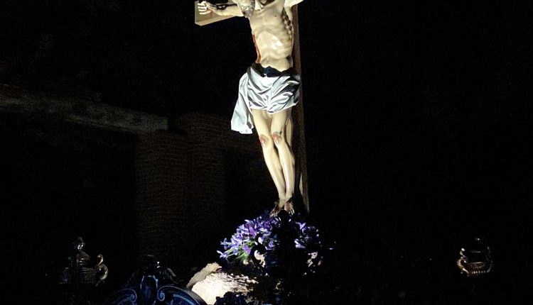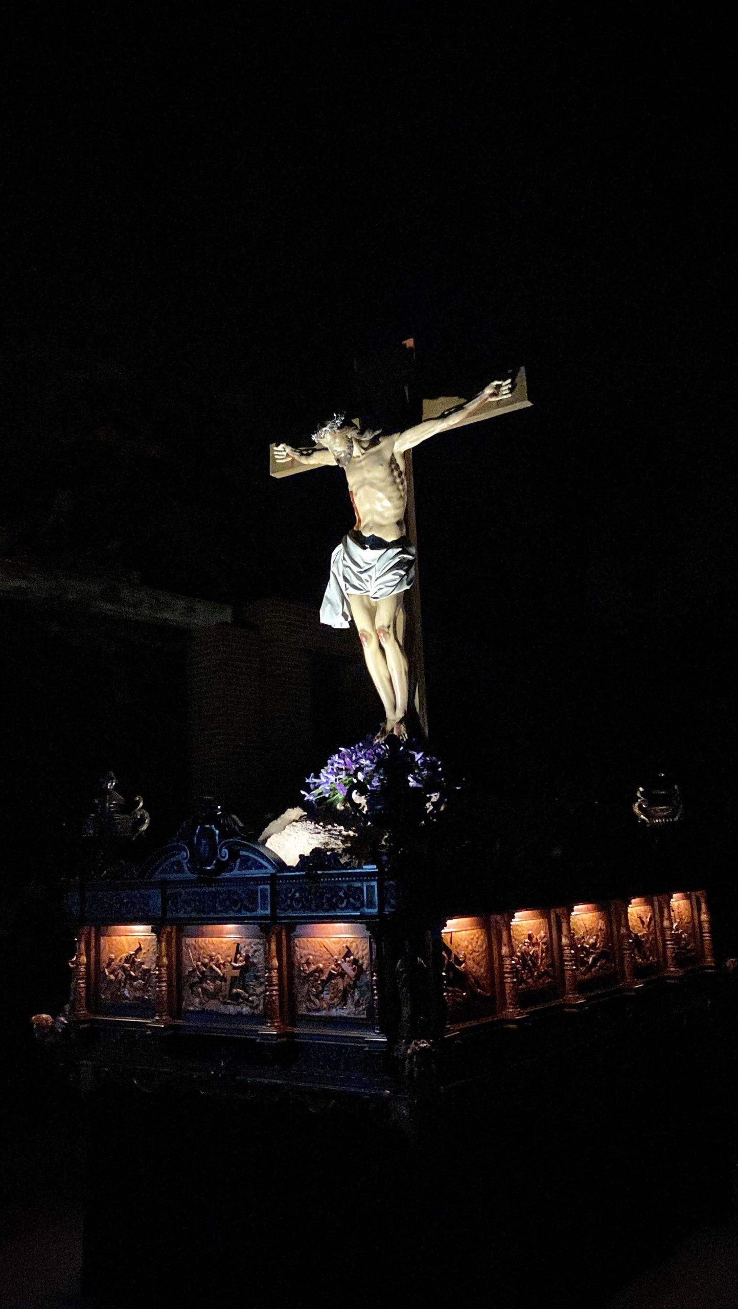 23:00 h.: PROCESIÓN DE LA HERMANDAD DEL SILENCIO. Desde la Real, Insigne y Majestuosa Iglesia Parroquial de Santiago el Mayor. Durante el recorrido se interpretará el Canto de la Pasión por ambos grupos pasionales.