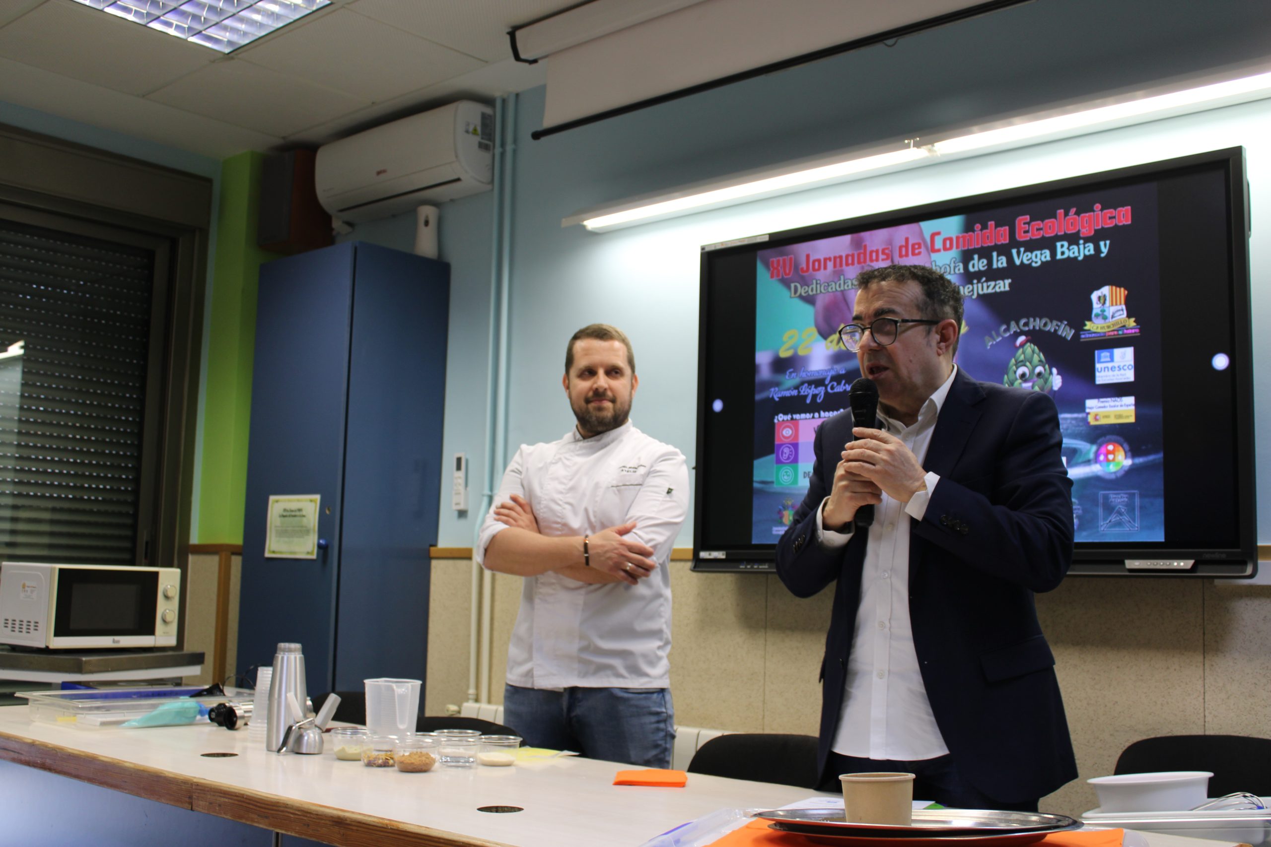 Los asistentes pudieron disfrutar de recetas elaboradas por los chefs Francisco Javier Amorós Cecilia y Óscar Menéndez Hernández, quienes presentaron innovadoras preparaciones con alcachofa. Además, el equipo de cocina del centro escolar ofreció un pincho de alcachofa en tempura con tomate cherry y ajo caramelizado.