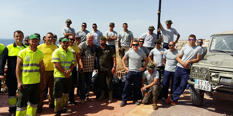 La brigada de Infraestructuras y los militares del MOE limpian los acantilados de Aguamarina