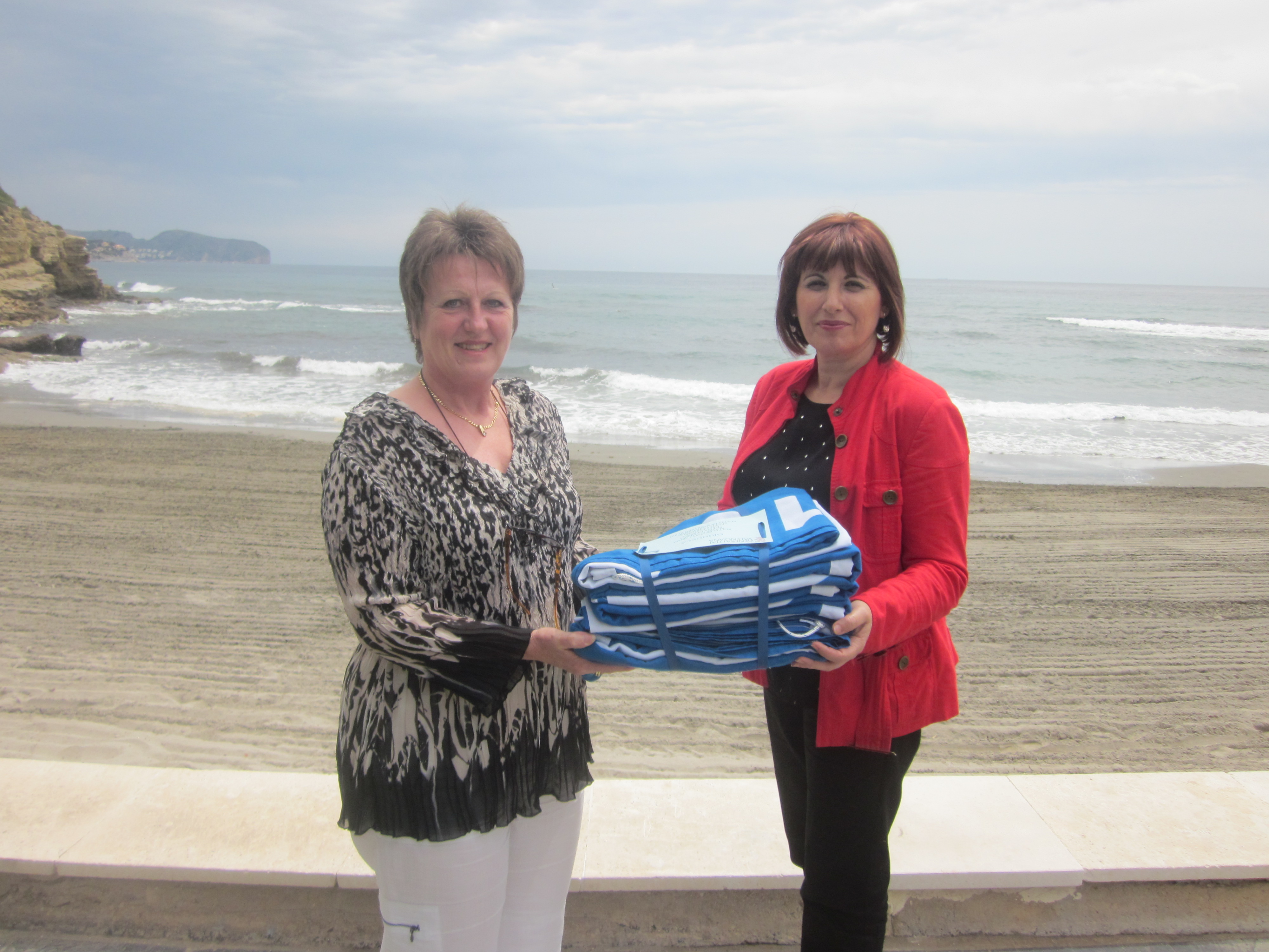 Las Concejalas de la Costa y Turismo, Martina Schreurer y Rosa Martínez, respectivamente, han recogido hoy en la Playa La Fustera de Benissa las siete banderas azules otorgadas a las playas de Orihuela por la Asociación de Educación Ambiental y del Consumidor (ADEAC) y la Organización Mundial del Comercio (OMT).